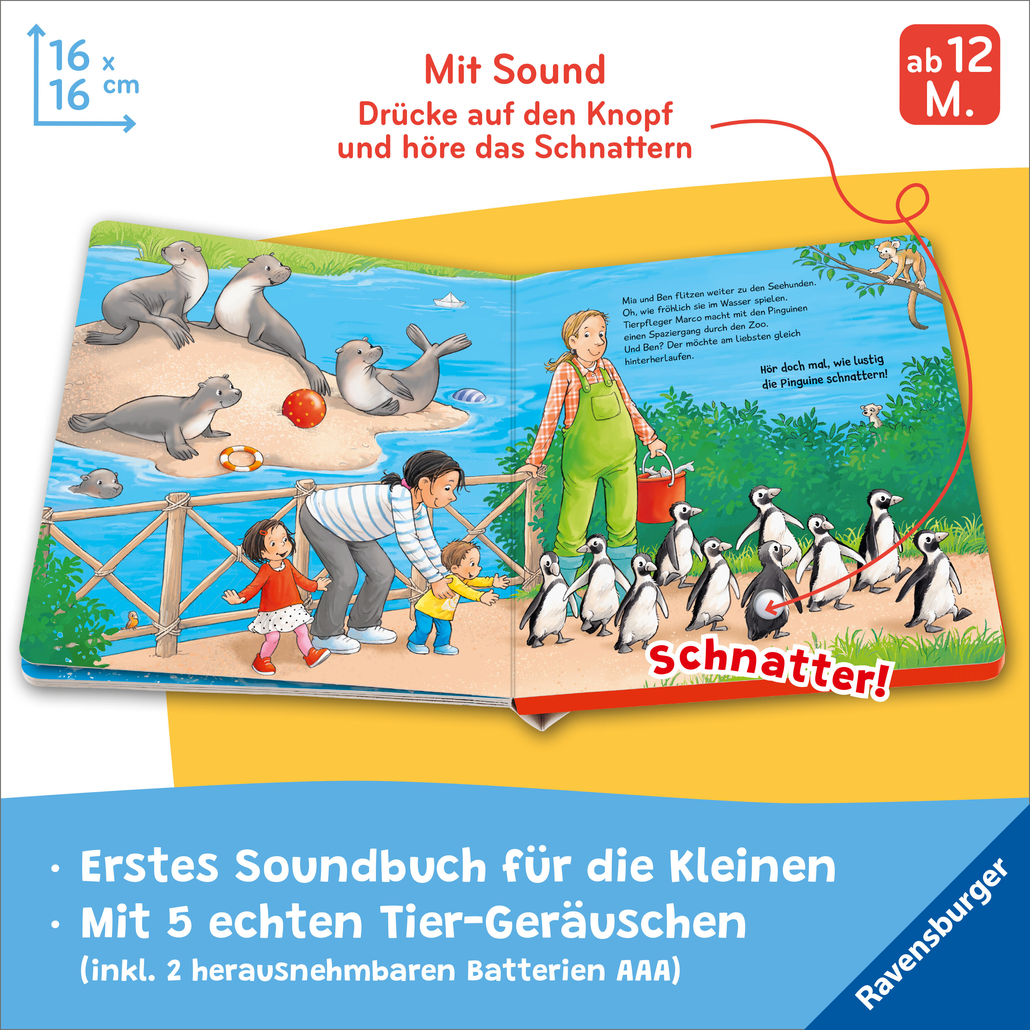 Ein Buch, das den Zoo ins Kinderzimmer bringt! Hier werden die Tiere lebendig: Einfach auf die großen Soundknöpfe drücken und schon brüllt der Löwe, schnattern die Pinguine und tröten die Elefanten. Wie klingen eigentlich Erdmännchen? Ein Buch mit 5 echten Tie...