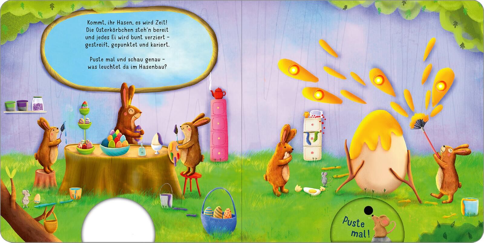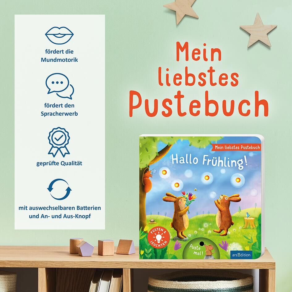 Pusten & staunen Der Frühling ist da! Die kleinen Tiere freuen sich über die ersten Sonnenstrahlen des Jahres. Es summt und brummt auf der Wiese und im Wald. Der kleine Bär lässt eine Pusteblume fliegen. Die eifrigen Hasen freuen sich auf Ostern und bemal...