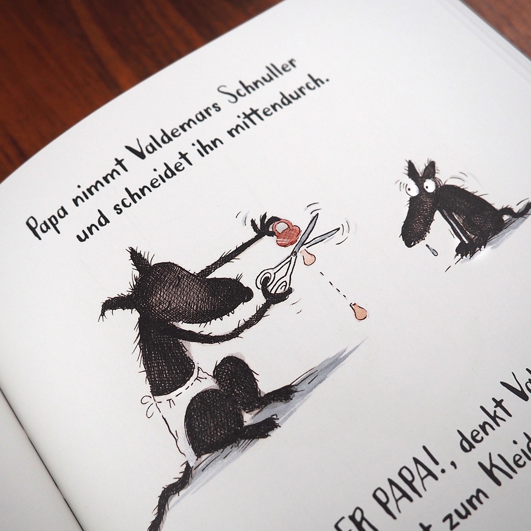 Schmatz, schmatz das ist der kleine Wolf Valdemar, für den es nichts Schöneres gibt, als an seinem Schnuller zu nuckeln. Doch mit einem Mal findet Papa, dass Valdemar keinen Schnuller mehr braucht. Er ist doch schon ein großer Wolf! Da kann ihm Valdemar nur zu...