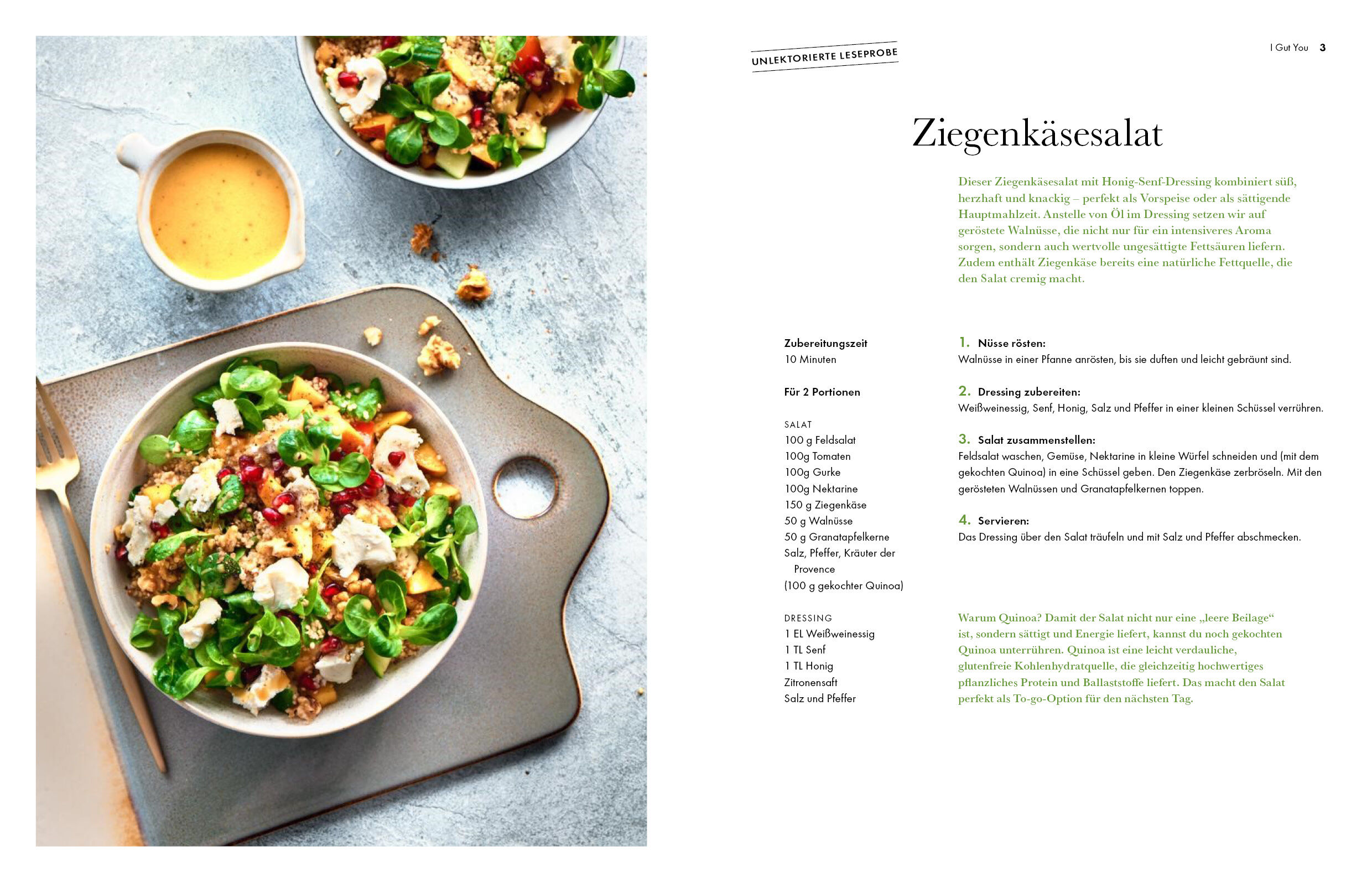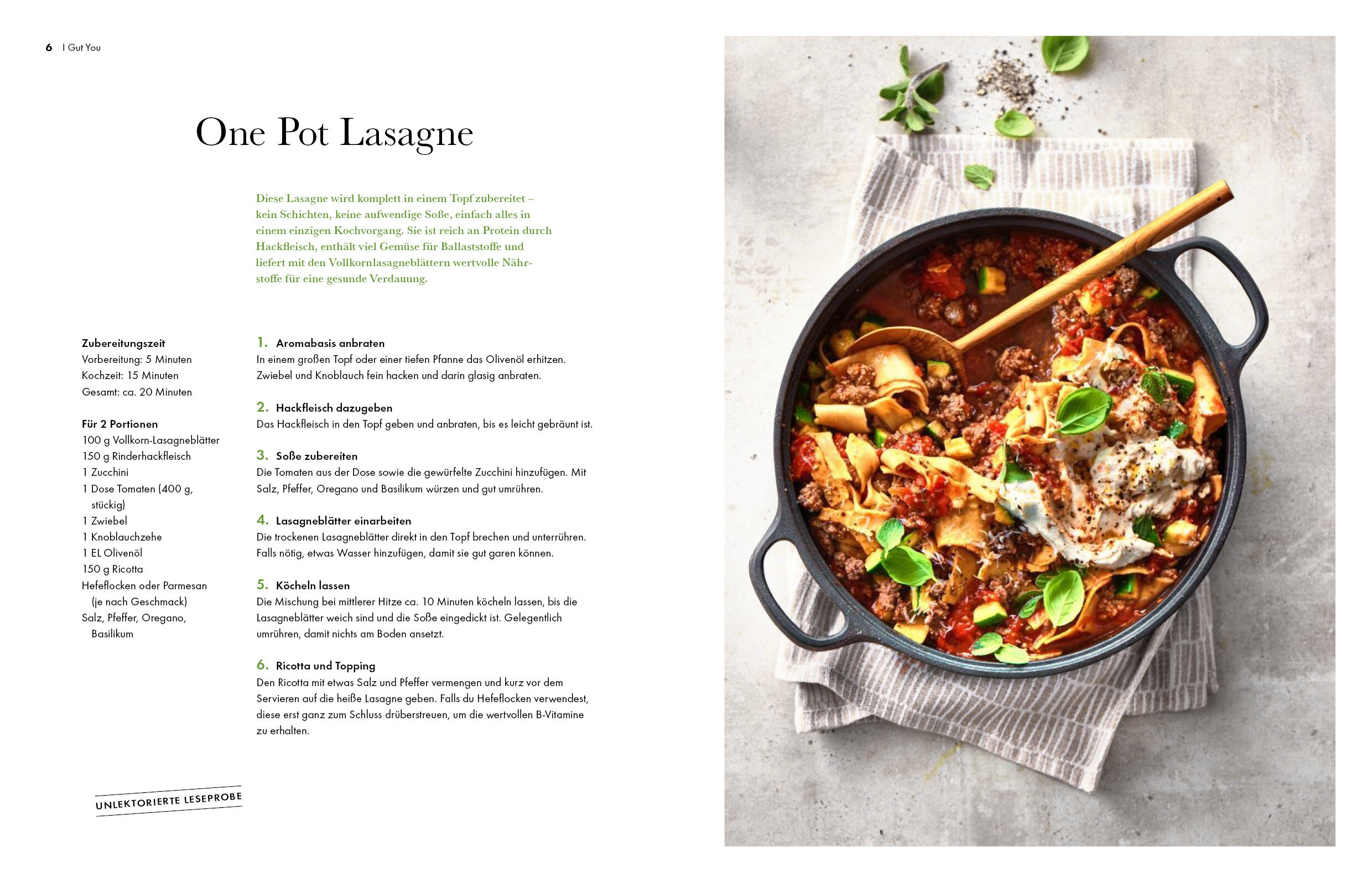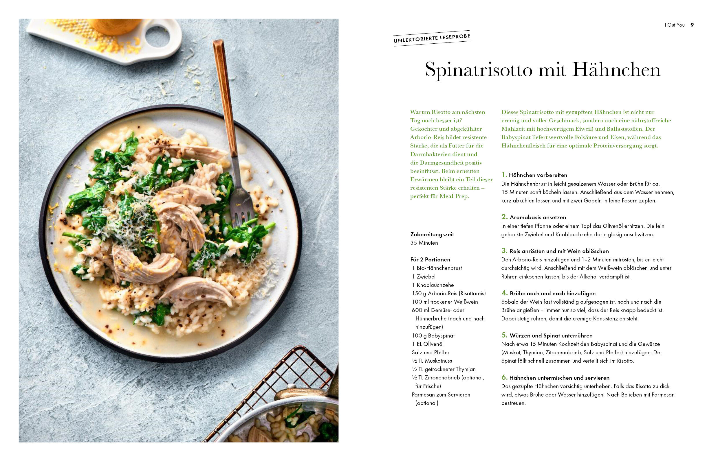 Gesund genießen – für Darm, Haut und Wohlbefinden Ernährungswissenschaftlerin und Food-Influencerin Maria Maas zeigt in ihrem ersten Kochbuch, wie einfach und lecker gesunde Ernährung sein kann – mit spürbaren Effekten für Darm, Haut und den ganzen Körper. Aus fundiertem Fachwissen, kreativer Kochlust und ihren eigenen Erfahrungen als Betroffene entstand ein einzigartiger Ratgeber voller Genuss und Mehrwert. Egal, ob du unter Akne, Blähbauch oder Reizdarmsyndrom leidest: Unter dem Motto „Viel essen, viele Nährstoffe" erwarten dich leckere, schnelle und alltagstaugliche Rezepte, die den Nährstoffhaushalt optimieren, die Verdauung sanft unterstützen und Energie schenken. Denn um dein Mikrobiom zu stärken, die Verdauung zu fördern und dein Immunsystem zu unterstützen, braucht es eine vielfältige, bunte Ernährung, die reich an Ballaststoffen, gesunden Fetten und fermentierten Lebensmitteln ist. Von Shakshuka und selbst gemachtem Sauerteigbrot über fluffige Pancakes, ballaststoffreiche Bowls und luftigen Kaiserschmarren bis zu fruchtigen Mango-Kreationen: Alle Gerichte sind ballaststoffreich, frisch, regional und voller Geschmack. Ein besonderes Highlight: Fermentation leicht gemacht! Lerne, wie du Kombucha, Sauerkraut, Kimchi und andere fermentierte Lebensmittel selbst herstellst, um dein Mikrobiom zu stärken. Dieses Kochbuch vereint Genuss und Fachwissen zu einem alltagstauglichen Ernährungsratgeber, der inspiriert und motiviert – und dir zeigt, wie gesundes Kochen dich von innen strahlen lässt. Gesundes Essen, das dir schmeckt: Genau dafür steht Maria.