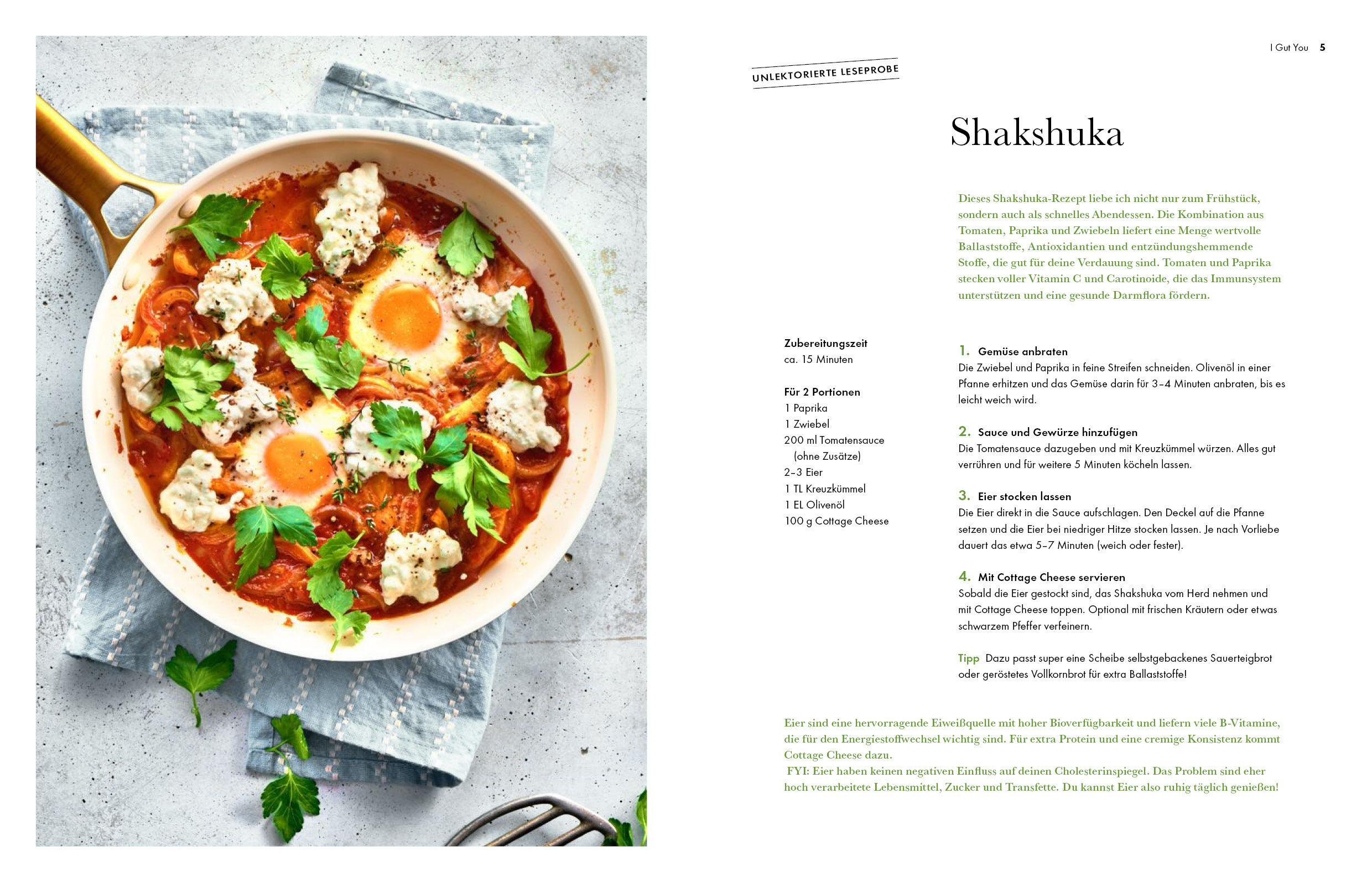 Ernährungswissenschaftlerin und Food-Influencerin Maria Maas zeigt in ihrem ersten Kochbuch, wie einfach und lecker gesunde Ernährung sein kann mit spürbaren Effekten für Darm, Haut und den ganzen Körper. Aus fundiertem Fachwissen, kreativer Kochlust und ihren eigenen Erfahrungen als Betroffene entstand ein einzigartiger Ratgeber voller Genuss und Mehrwert. Egal, ob du unter Akne, Blähbauch oder Reizdarmsyndrom leidest: Unter dem Motto Viel essen, viele Nährstoffe erwarten dich leckere, schnelle und alltagstaugliche Rezepte , die den Nährstoffhaushalt optimieren, die Verdauung sanft unterstützen und Energie schenken. Denn um dein Mikrobiom zu stärken, die Verdauung zu fördern und dein Immunsystem zu unterstützen, braucht es eine vielfältige, bunte Ernährung , die reich an Ballaststoffen, gesunden Fetten und fermentierten Lebensmitteln ist. Von Shakshuka und selbst gemachtem Sauerteigbrot über fluffige Pancakes , ballaststoffreiche Bowls und luftigen Kaiserschmarren bis zu fruchtigen Mango-Kreationen: Alle Gerichte sind ballaststoffreich, frisch, regional und voller Geschmack.