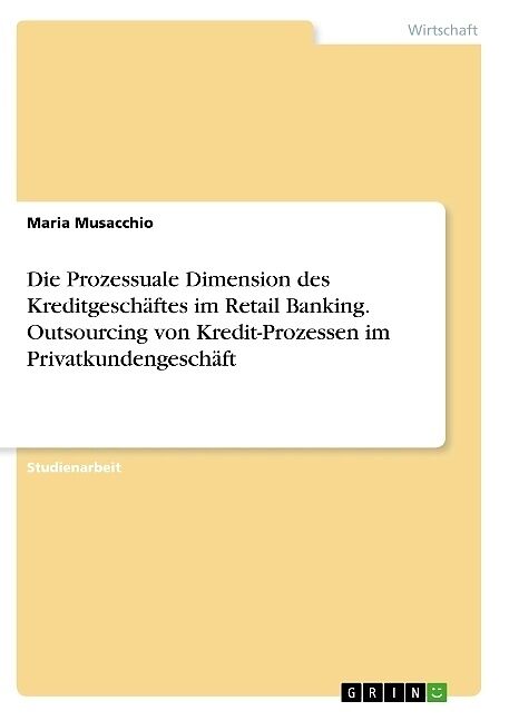 Studienarbeit aus dem Jahr 2017 im Fachbereich BWL - Bank, Börse, Versicherung, Note: 2,0, Hochschule der Sparkassen-Finanzgruppe Bonn, Sprache: Deutsch, Abstract: Das Thema dieser Arbeit beinhaltet die Prozessuale Dimension des Kreditgeschäftes im Retail Bank...