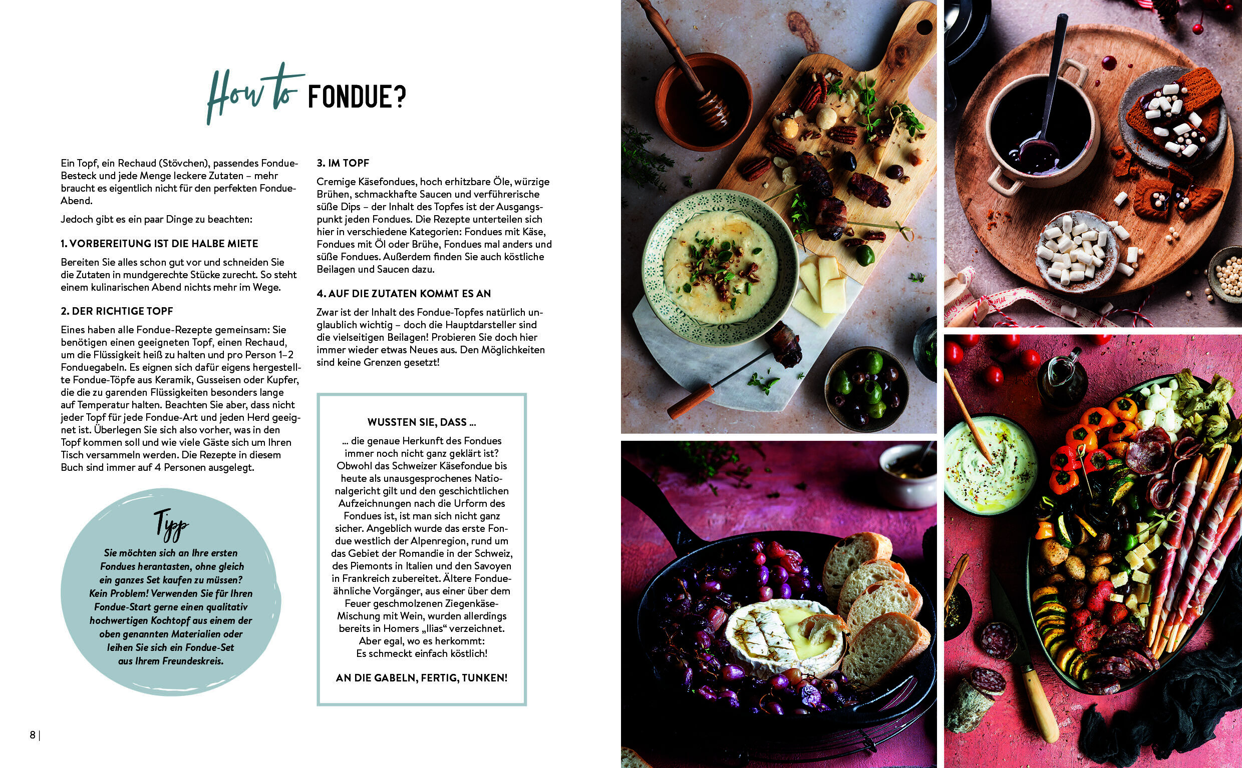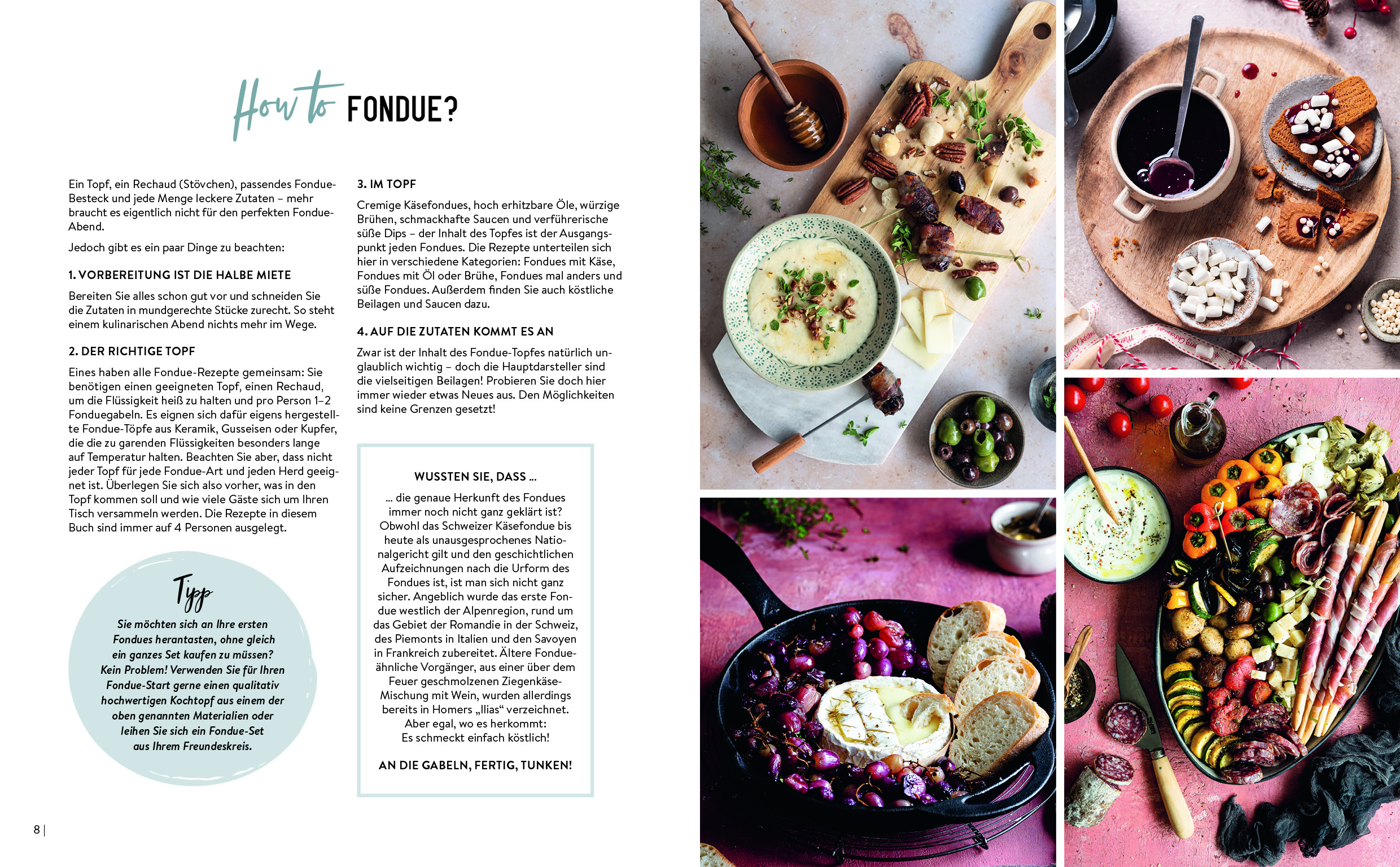 Neue und einzigartige Rezepte rund um Raclette und Fondue! Kreative Crossover wie Pizza-, Gazpacho- oder Cheeseburger-Fondue sowie internationale Rezepte wie Gyros-Pfännchen aus Griechenland, Dulce de leche-Brownies aus Südamerika oder Koriander-Kartoffeln mi...