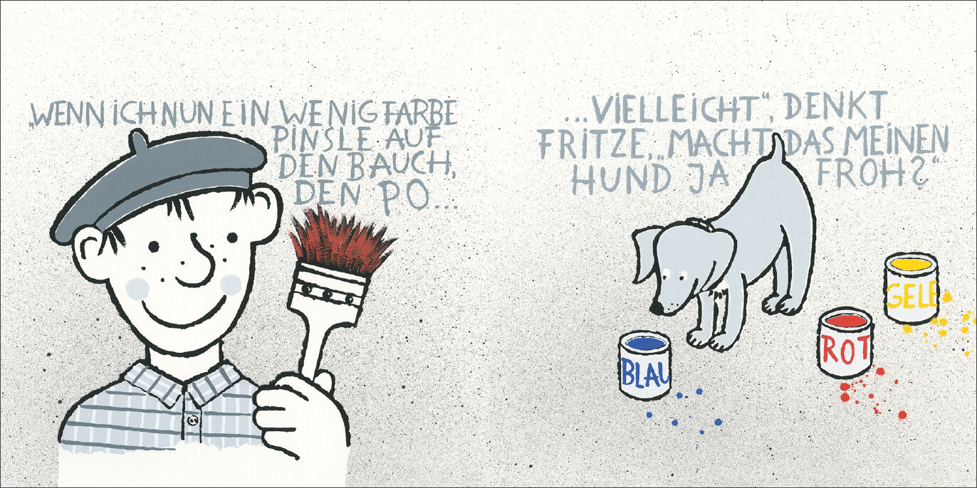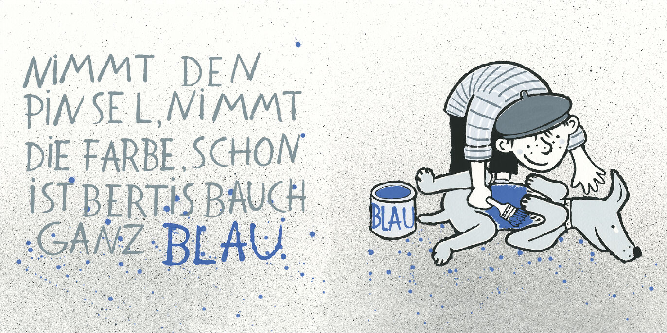 Fritz malt gerne bunte Bilder. Sein Hund Bert ist grau. Fritz hat eine Idee: Warum nicht Bert bunt anmalen? Er nimmt Grün und Blau, Gelb und Rot, Lila und Orange und nun ist Bert ein kunterbunter Kunterhund. Für Kinder ab 24 Monaten. Autorentext Maria Vohn, ge...