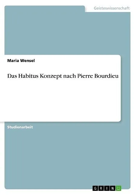 Studienarbeit aus dem Jahr 2017 im Fachbereich Kulturwissenschaften - Allgemeines und Begriffe, Note: 2,7, HafenCity Universität Hamburg, Veranstaltung: Kulturtheorie, Sprache: Deutsch, Abstract: In der folgenden Arbeit erläutere ich das Habitus-Konzept von Pi...