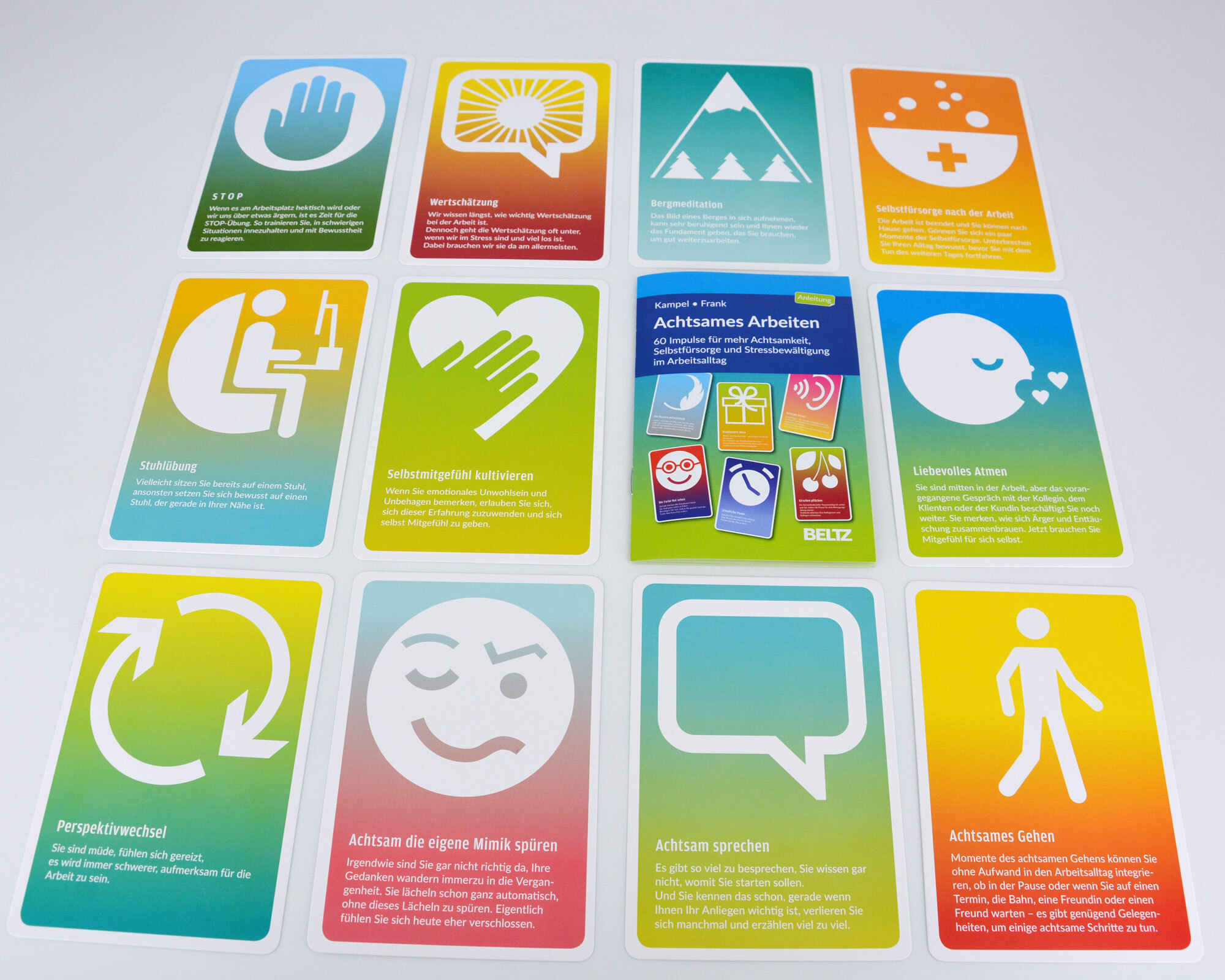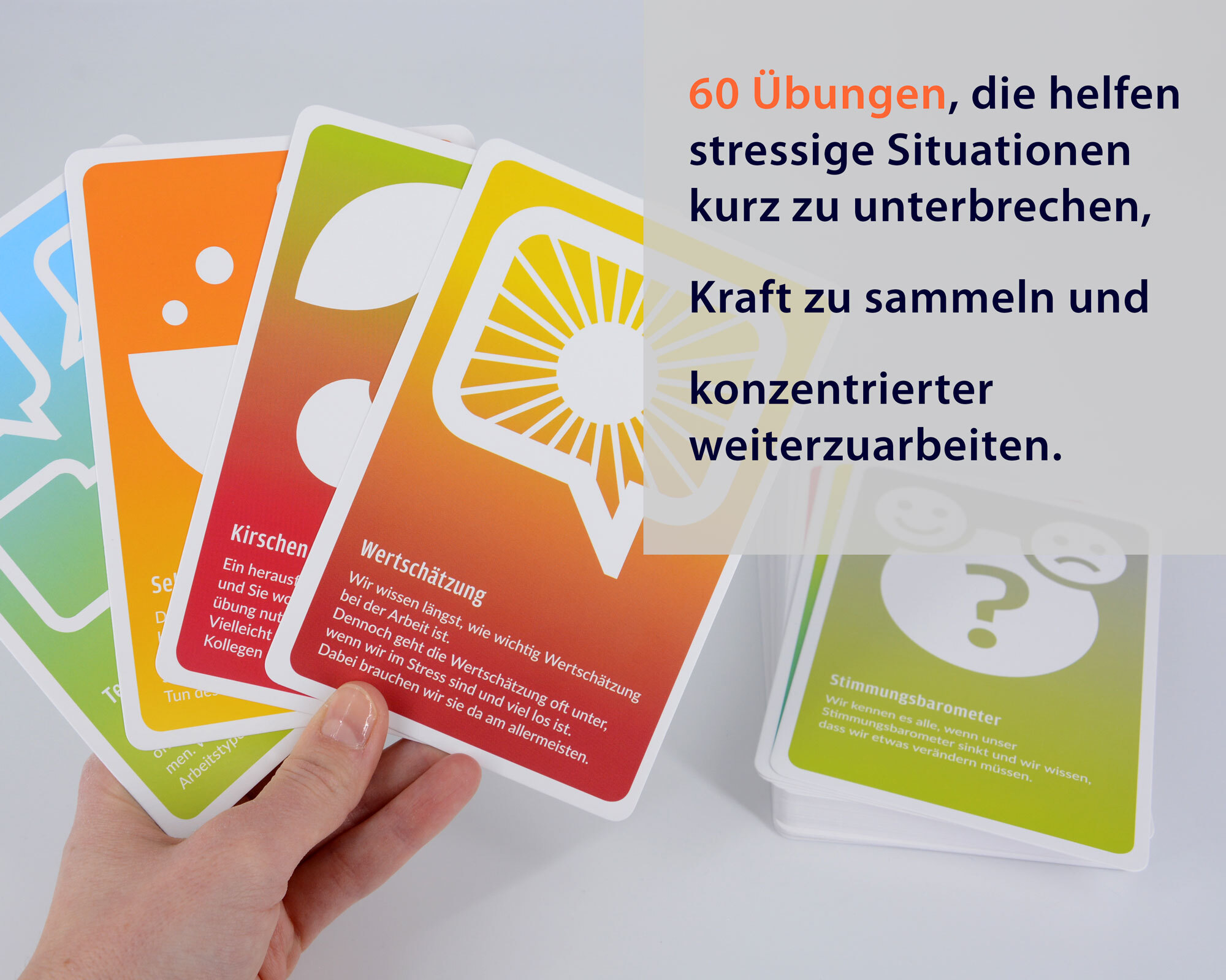 Sei es das Stimmungsbarometer, die Bergmeditation oder die Übung »Kirschen pflücken« die 60 Impulskarten fördern Achtsamkeit, Selbstfürsorge und Stressbewältigung im Arbeitsalltag. In herausfordernden Arbeitsmomenten helfen die Karten die Situation zu unterbre...