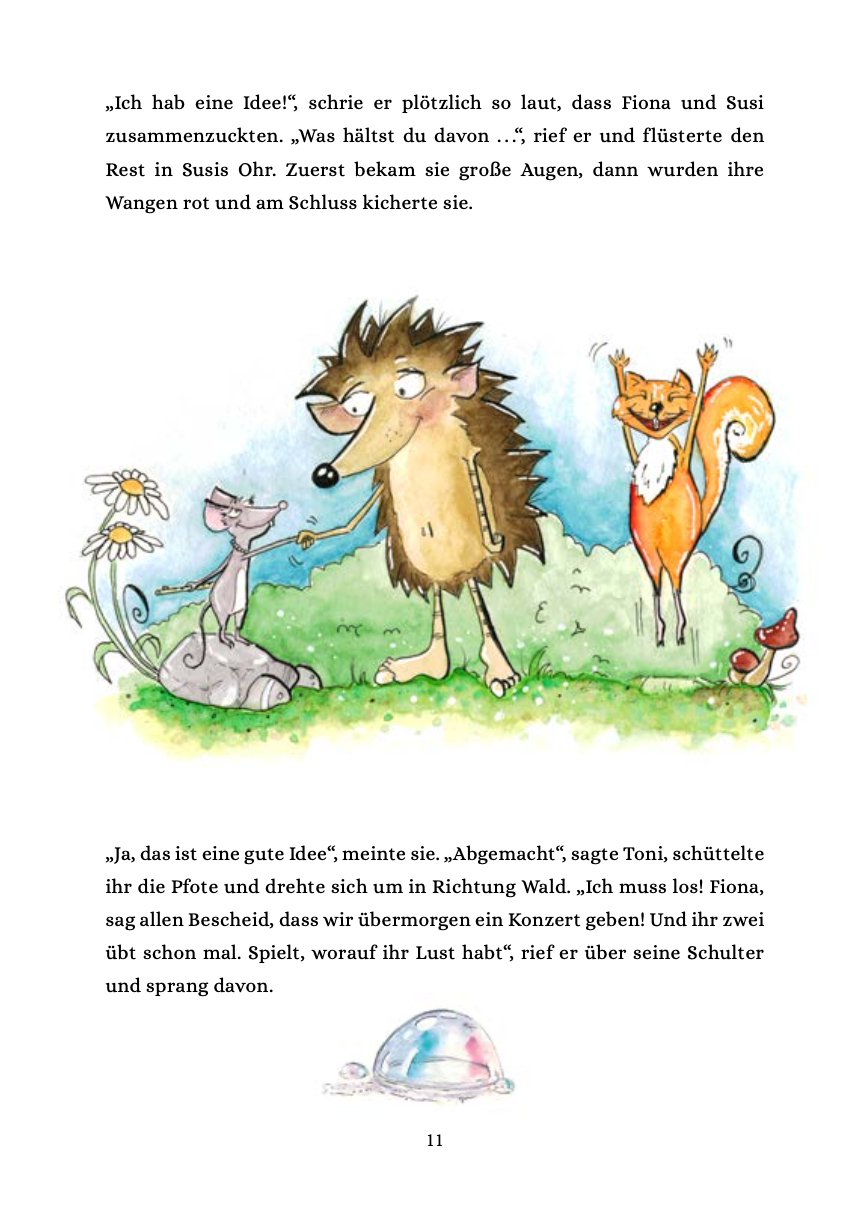 Susi, eine flotenspielende Maus, wird von Igel und Eichhörnchen entdeckt. Sie kann wunderbar spielen, aber vor einem Auftritt hat sie so viel Angst, dass sie sich gleich wieder verkriecht. Da hat der Igel Toni eine außergewöhnliche Idee! Kann er ihr helfen, ih...