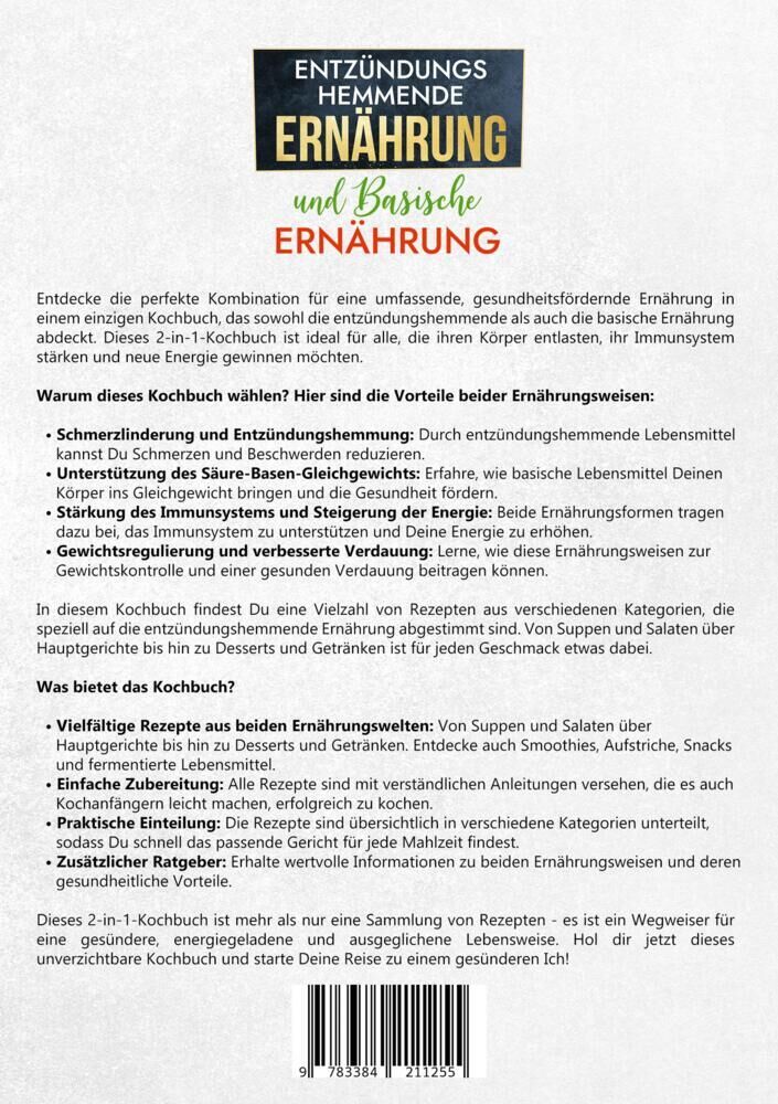 Entdecke die perfekte Kombination für eine umfassende, gesundheitsfördernde Ernährung in einem einzigen Kochbuch, das sowohl die entzündungshemmende als auch die basische Ernährung abdeckt. Dieses 2-in-1-Kochbuch ist ideal für alle, die ihren Körper entlasten,...