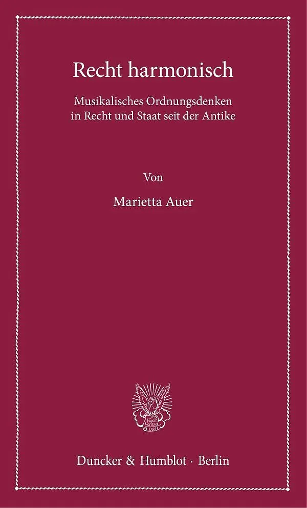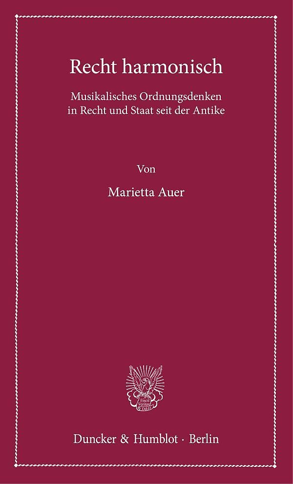 Die Beziehungen zwischen Recht und Musik sind fast unüberschaubar zahlreich. Marietta Auer zeigt, dass diese vielfältigen Beziehungen, die von Fragen der Sprache, Schrift, Interpretation und Ästhetik bis hin zu mathematischen Gesetzen harmonischer Proportion r...