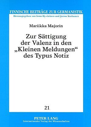 Gegenstand der Untersuchung ist die sogenannte pragmatische Valenz, die zuerst in der Forschungsliteratur recherchiert und dann im Lichte einer empirischen Analyse reflektiert wird. Als Untersuchungsmaterial dient eine Sammlung von «Kleinen Meldungen» aus der ...