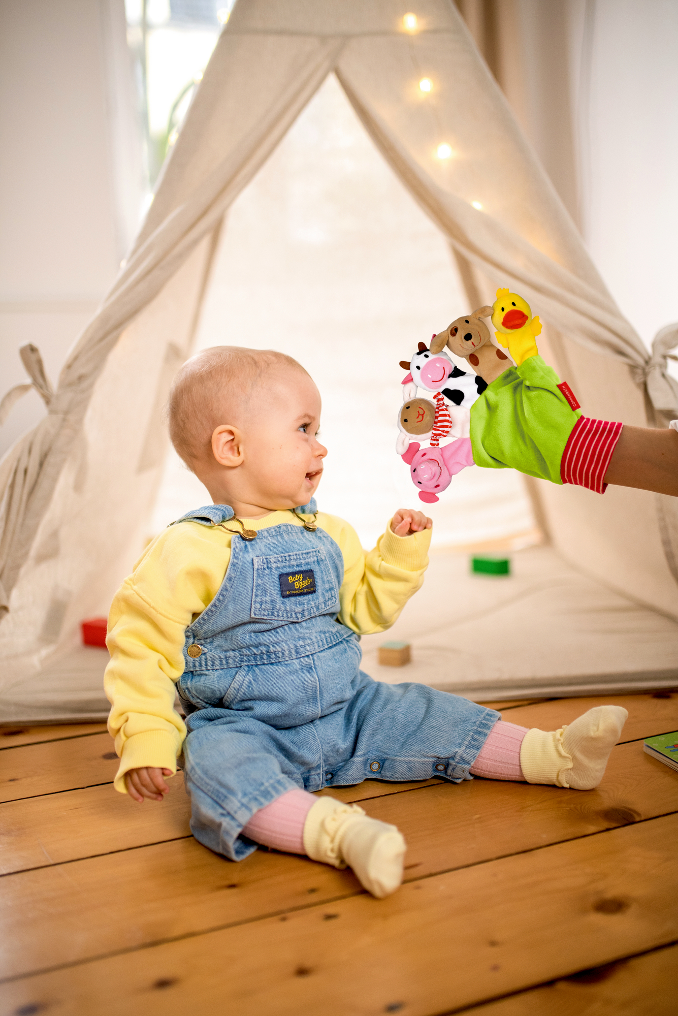 Der hochwertige Fingerpuppenhandschuh mit dem kuschelweichen Material und den lustigen Tierköpfchen passt perfekt an die Hand der Eltern und garantiert ersten Spielspaß mit dem Baby. Das Büchlein enthält sechs bekannte und beliebte Fingerspiele - das ist die ...