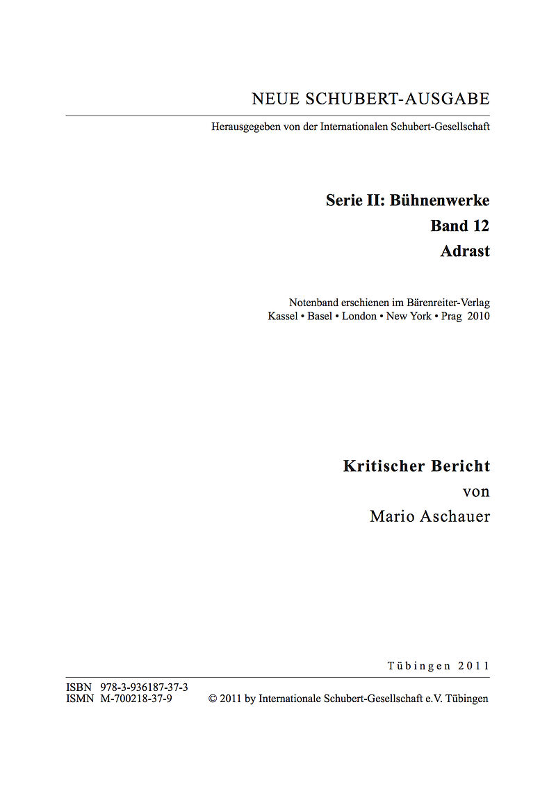 Neue Schubert-Ausgabe. Kritische Berichte / Bühnenwerke / Adrast