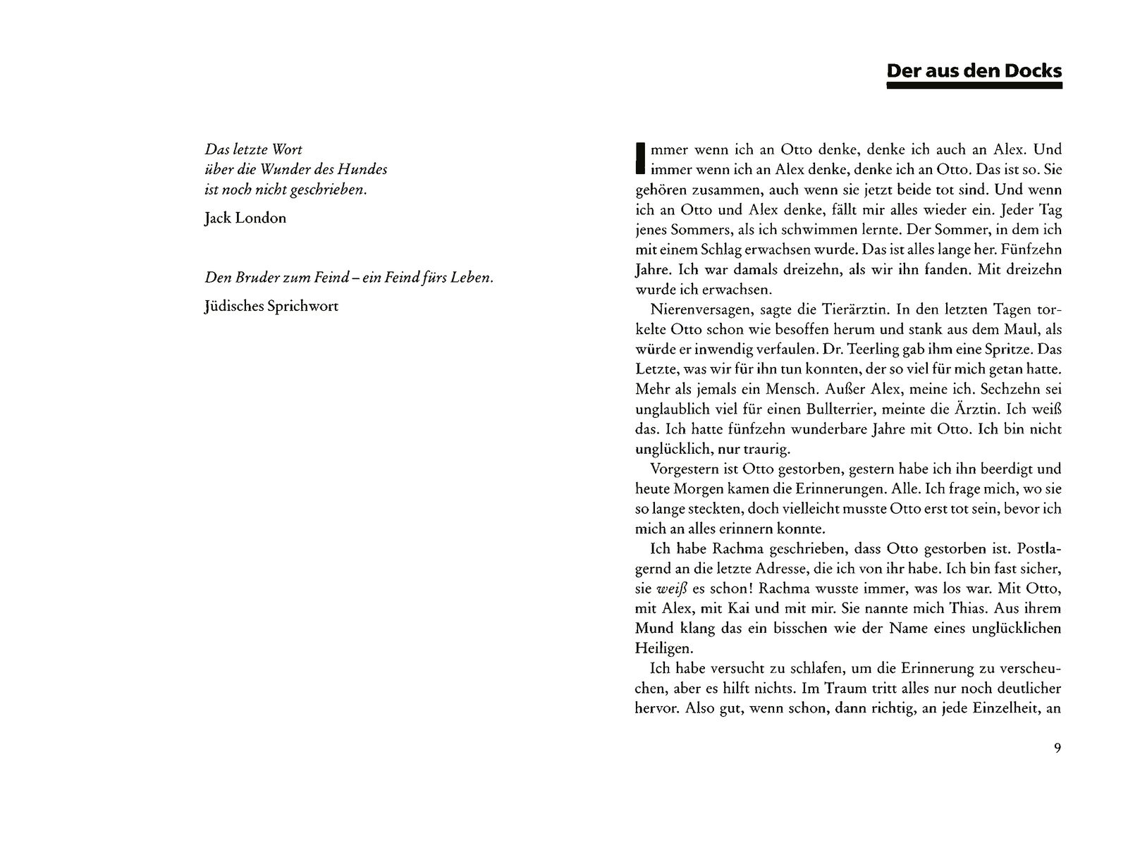 Matthias und Alex retten einen Hund vor dem Ertrinken aus der Elbe. Das Geheimnis um den halbtoten Bullterrier reißt beide Jungen in den Sog lebensgefährlicher Abenteuer. Es geht um die Feindschaft zweier Brüder, um Liebe, Freundschaft, skurrile Typen in der ...