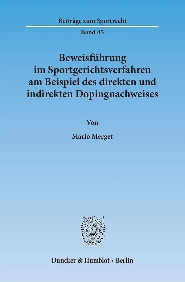 Mit seiner breit angelegten Untersuchung stellt der Autor systematisch die essenziellen Fragen des Sportrechts dar und rückt hierbei die Voraussetzungen einer erfolgreichen sportverbandsrechtlichen Beweisführung im Hinblick auf den direkten und indirekten Dopi...