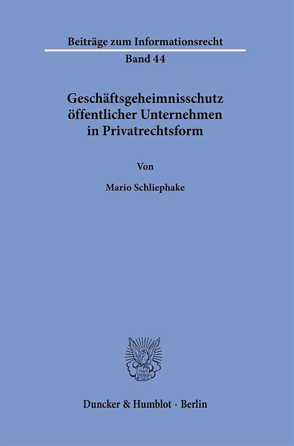 Die Untersuchung wird von der Fragestellung getragen, inwieweit der Geschäftsgeheimnisschutz öffentlicher Unternehmen in Privatrechtsform verfassungsrechtlich bedingt ist. Diese verfassungsrechtliche Einbettung des Geschäftsgeheimnisschutzes wird zum einen anh...