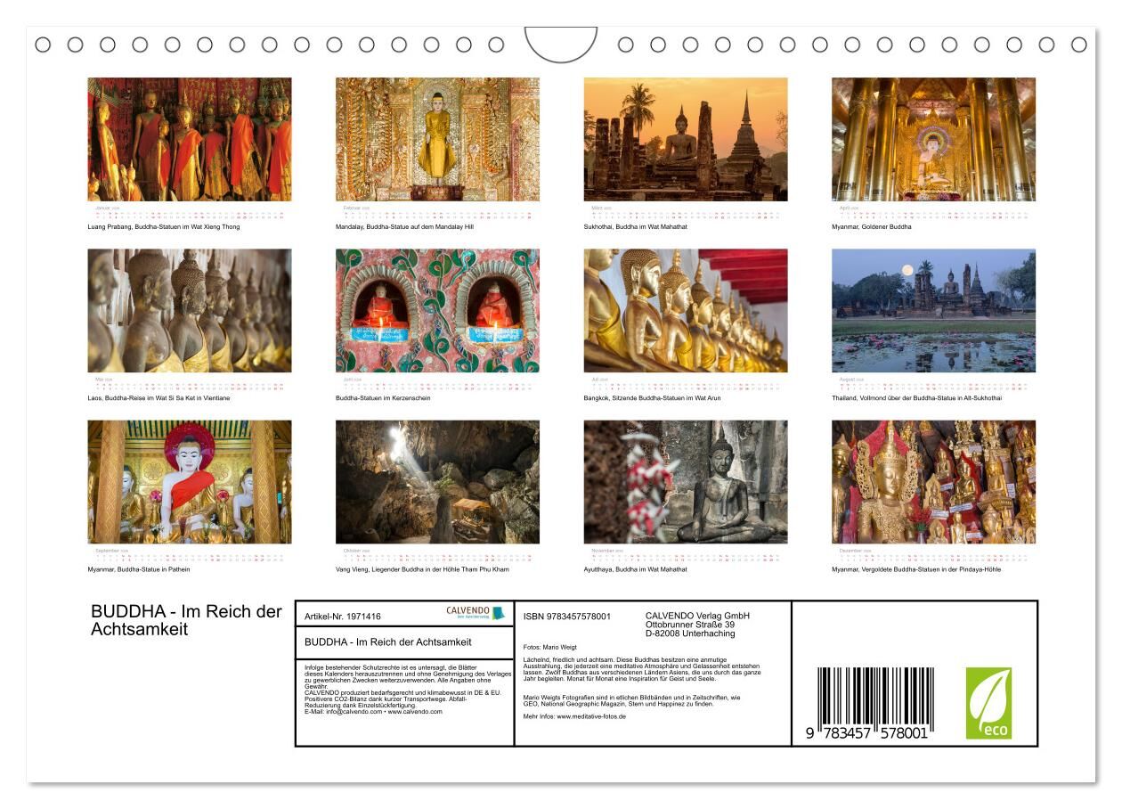 BUDDHA - Im Reich der Achtsamkeit (Wandkalender 2026 DIN A4 quer), CALVENDO Monatskalender