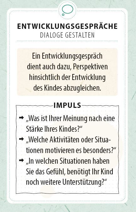Mit Eltern im Dialog bleiben Eine vertrauensvolle Zusammenarbeit zwischen Kita und Eltern ist der Schlüssel zu einer starken Beziehung und einer erfolgreichen Entwicklung der Kinder. Von Anfang an eingebunden, entsteht ein gemeinsamer Weg im Interesse des Kind...