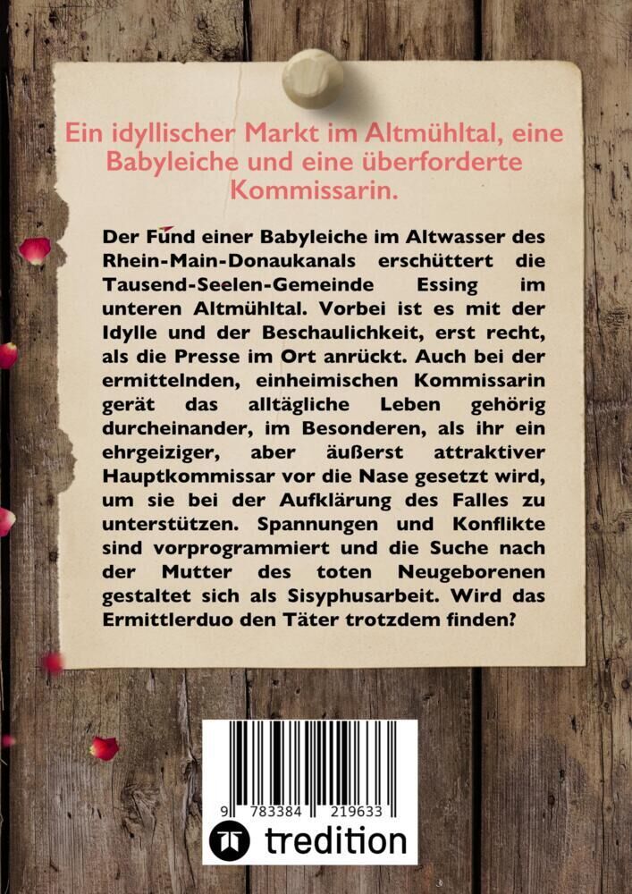 Dorfkommissarin Mary wird jäh aus ihrem ruhigen Job gerissen, als eine Babyleiche aus dem Altwasser des Rhein-Main-Donaukanals geborgen wird. Als die Presse davon Wind bekommt, ist es vorbei mit der idyllischen Ruhe in der kleinen Gemeinde Essing im unteren Al...