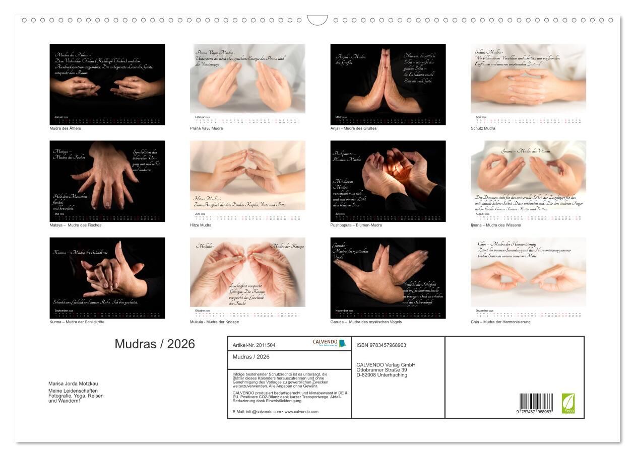 Mudras / 2026 (Wandkalender 2026 DIN A2 quer), CALVENDO Monatskalender