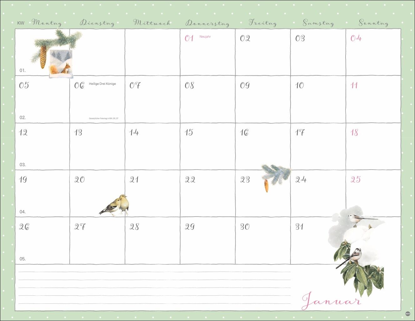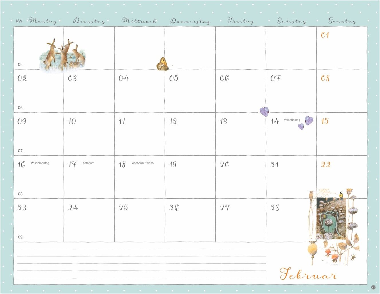 Aus ihren Zeichnungen spricht die Liebe zur Natur: Der Marjolein-Bastin-Kalender bezaubert durch die vielen Details - Ein Monatsplaner der »Mama« von Vera der Maus, in dem der Raum für Eintragungen durch kleine Vignetten im Kalendarium aufgelockert wird - Fa...