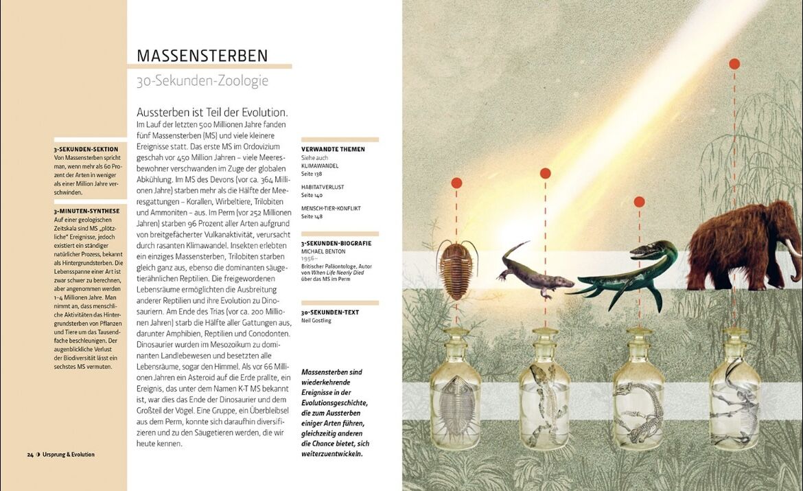 Zoologie in 30 Sekunden erklärt den evolutionären Prozess, der zu Vielfalt führt, und stellt die Hauptgruppen der Wirbeltiere und Wirbellosen vor. Atmen, kommunizieren, sehen und andere physiologische Merkmale der Tierphysiologie und des Verhaltens werden bele...