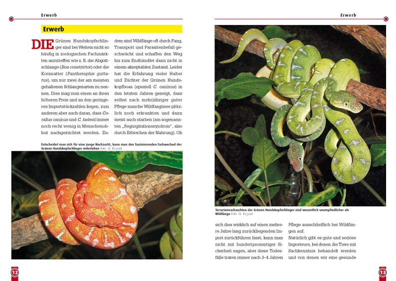 Um kaum eine andere Schlangenart ranken sich so viele Vorurteile wie um die beiden Hundskopfschlinger Corallus batesii (Grüne Hundskopfboa) und Corallus caninus (Smaragdbaumboa). Dabei ist ihre erfolgreiche Pflege kein Hexenwerk, wenn man gesunde Exemplare erw...