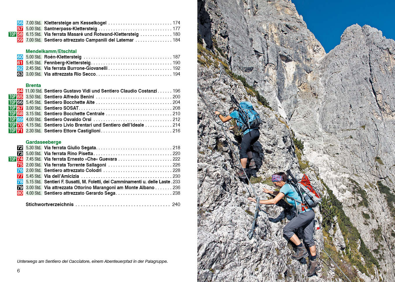 Die Dolomiten sind das klassische und wohl auch beliebteste Klettersteig-Eldorado überhaupt. Zusammen mit der Brenta und noch ein Stück südlicher mit den Gardaseebergen erschließt sich Klettersteigfans eine unglaubliche Fülle an Steigen unterschiedlichen Schwi...