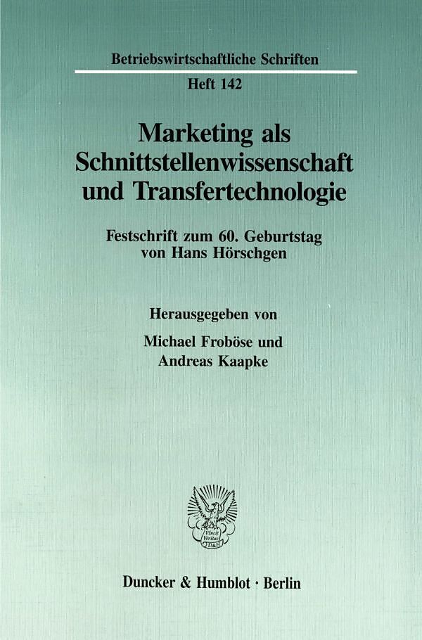 Wie kaum eine zweite wissenschaftliche Disziplin steht das Marketing in engen wechselseitigen Beziehungen zu anderen Fachgebieten. Diese Offenheit der Marketing-Theorie und -Forschung zeigt sich zum einen in der intensiven Nutzung von Inhalten und Methoden ben...Wie kaum eine zweite wissenschaftliche Disziplin steht das Marketing in engen wechselseitigen Beziehungen zu anderen Fachgebieten. Diese Offenheit der Marketing-Theorie und -Forschung zeigt sich zum einen in der intensiven Nutzung von Inhalten und Methoden benachbarter Wissenschaftsdisziplinen, zum anderen in der ständigen Ausweitung der Anwendungsbereiche des Marketing. Prof. Dr. Hans Hörschgen, dessen wissenschaftliches Werk anläßlich seines 60. Geburtstags mit der vorliegenden Festschrift gewürdigt werden soll, hat beide Entwicklungsrichtungen des Marketing-Ansatzes nachhaltig gefördert. Mit diesen Entwicklungslinien setzen sich auch die einzelnen Beiträge aus unterschiedlichen Blickwinkeln auseinander. Nach einem einleitenden Abschnitt zum interdisziplinären Selbstverständnis der Marketing-Wissenschaft beschäftigt sich der zweite Teil des Buches mit der Bedeutung des Marketing in Theorie und Praxis. Der dritte Teil beleuchtet eine Vielzahl von Schnittstellen im wissenschaftlichen Bereich und behandelt die Nutzungsmöglichkeiten von Fachinhalten und Methoden angrenzender Fachgebiete in der Marketing-Wissenschaft. In diesem Kapitel werden u. a. die Spieltheorie, die Konsumentenforschung und die Militärtheorie im Hinblick auf ihr Transferpotential untersucht. Das Wesen des Marketing als Transfertechnologie findet seinen Niederschlag im vierten Kapitel; hier geht es um neuartige Einsatzfelder, in denen die Marketing-Technologie als Problemlösungsheuristik bereits eingesetzt wird oder in denen sie in Zukunft genutzt werden könnte, wie z. B. in Soziologie, Wirtschaftspolitik und Kunst. Vor dem Hintergrund dieses umfassenden Marketing-Verständnisses wendet sich der fünfte Teil aktuellen Entwicklungen in der Marketing-Praxis zu, beispielsweise dem computerintegrierten Informationsmanagement oder dem Outsourcing der Distributionslogistik. Da diese immer komplexer, aber auch kurzlebiger werdenden Probleme der Praxis auch auf die Hochschulen zurückwirken, beschäftigen