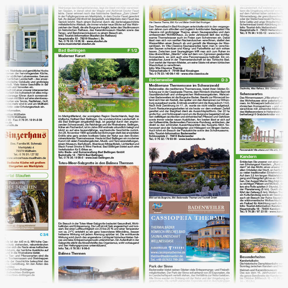 Zwischen Freiburg im Breisgau und Basel gelegen, bietet das Markgräflerland ein breites Spektrum an Freizeitaktivitäten, Sehenswürdigkeiten und Veranstaltungen. Der Landstrich ist begünstigt durch sehr mildes Klima, ein Grund dafür, dass die unendlich vielen O...