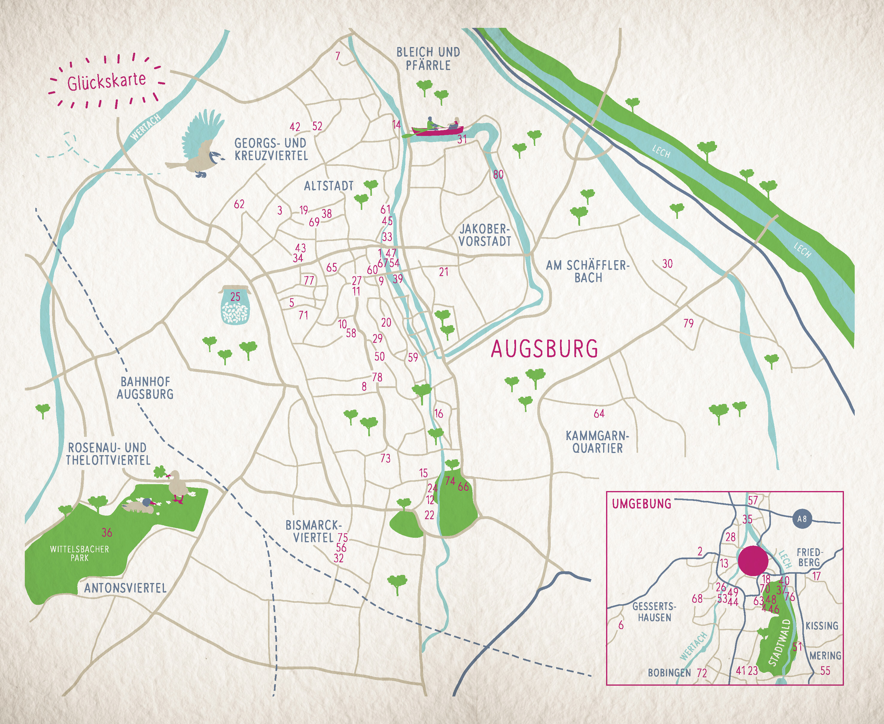 Sie ist eine der ältesten Städte in Deutschland, wahrscheinlich eine der schönsten, sicherlich aber eine der grünsten die faszinierende Fuggerstadt Augsburg. Mit ihrer von der UNESCO ausgezeichneten historischen Wasserwirtschaft, aber auch mit ihren reichen Ku...