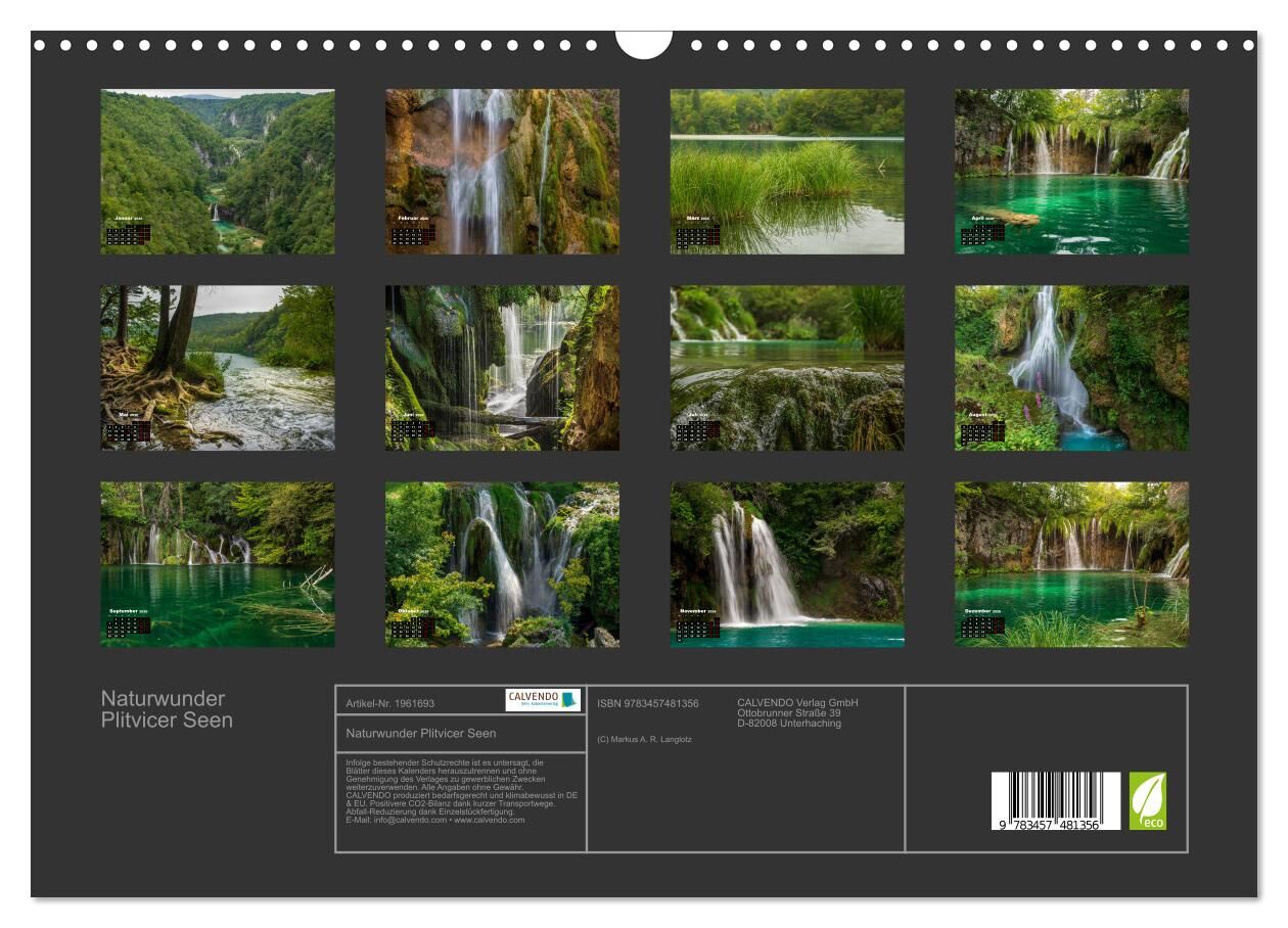 Naturwunder Plitvicer Seen (Wandkalender 2026 DIN A3 quer), CALVENDO Monatskalender