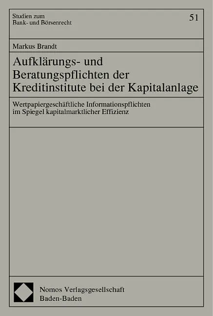 Mit wachsender Bedeutung privater Aktienanlagen hat auch die Frage nach den Beratungspflichten der Banken erheblich an Bedeutung gewonnen. Die vorliegende Arbeit untersucht, inwieweit bestehende Informationspflichten den Anforderungen des Verbraucherschutzes s...