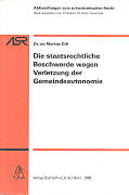 Klappentext Die Kantonsverfassungen gewährleisten die Autonomie der Gemeinden. Diese können sich gegen einen kantonalen Hoheitsakt, der ihre Selbständigkeit verletzt, vor Bundesgericht zur Wehr setzen. Das Mittel hierzu ist die staatsrechtliche Beschwerde wege...