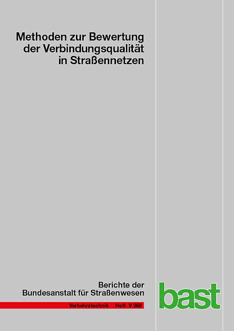 V 368: Methoden zur Bewertung der Verbindungsqualität in Straßennetzen Markus Friedrich, Jürgen Bawidamann, Lars Peter, Volker Waßmuth 132 S., 94 Abb., 37 Tab., ISBN 978-3-95606-726-6, 2023 EUR 20,00 Der Zeitaufwand für eine Ortsveränderung ist die zentrale Ke...
