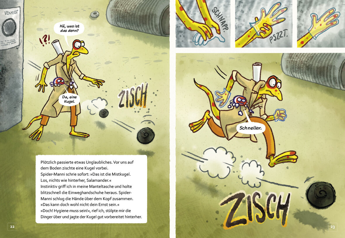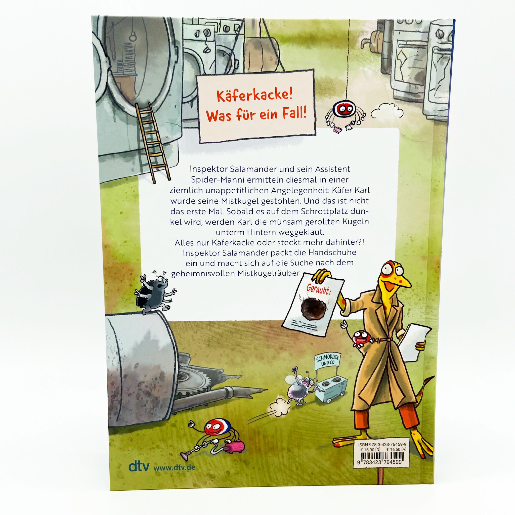 Käferkacke! Was für ein Fall! Inspektor Salamander und sein Assistent Spider-Manni ermitteln diesmal in einer ziemlich unappetitlichen Angelegenheit: Käfer Karl wurde seine Mistkugel gestohlen. Und das ist nicht das erste Mal. Sobald es auf dem Schrottplatz d...