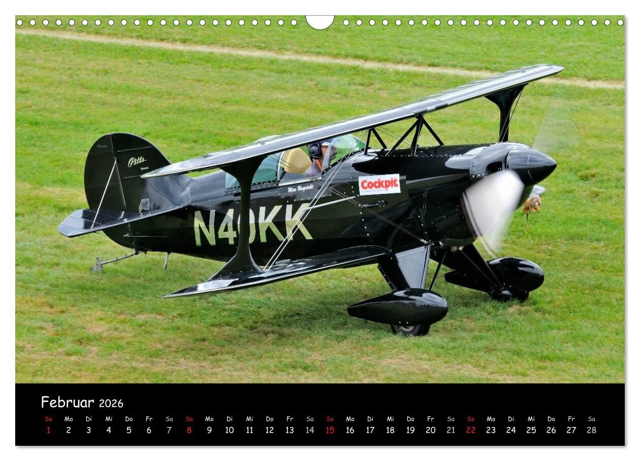 Lassen Sie sich durch das Jahr begleiten mit den weltberühmten Doppeldeckern wie z.B. Boeing Stearman PT-17, De Havilland Tiger Moth, Antonow AN-2, Pitt's S2s, Bücker Jungmeister u.v.m.