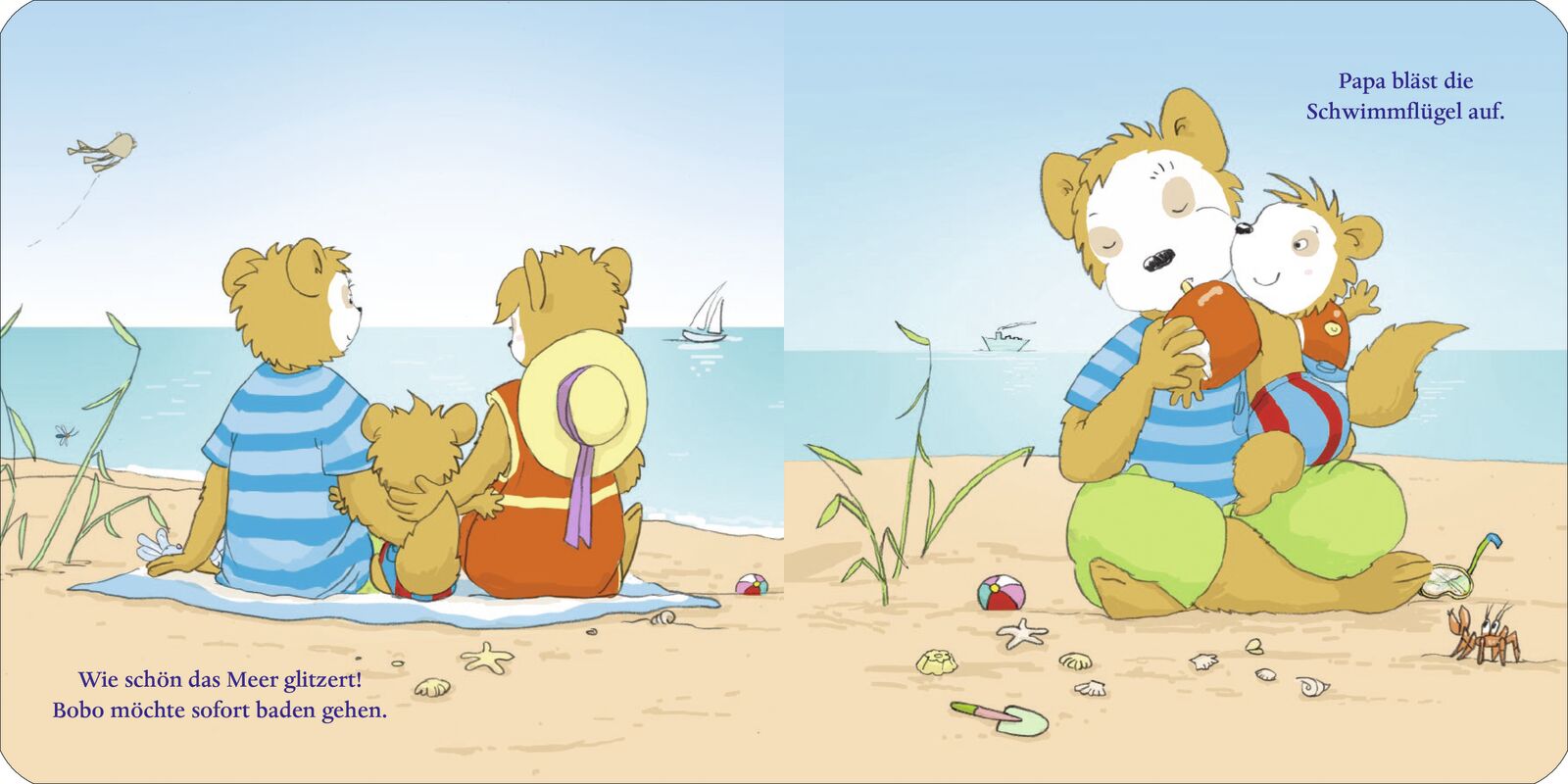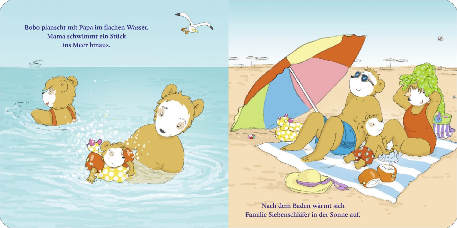 Mit Bobo in den Urlaub fahren! Familie Siebenschläfer ist in den Ferien am Meer! Erst fahren Bobo und seine Eltern mit einer kleinen Bahn am Strand entlang. Dann spielt Bobo im weichen Sand. Er badet mit Papa in den Wellen, findet Muscheln und besucht mit sei...