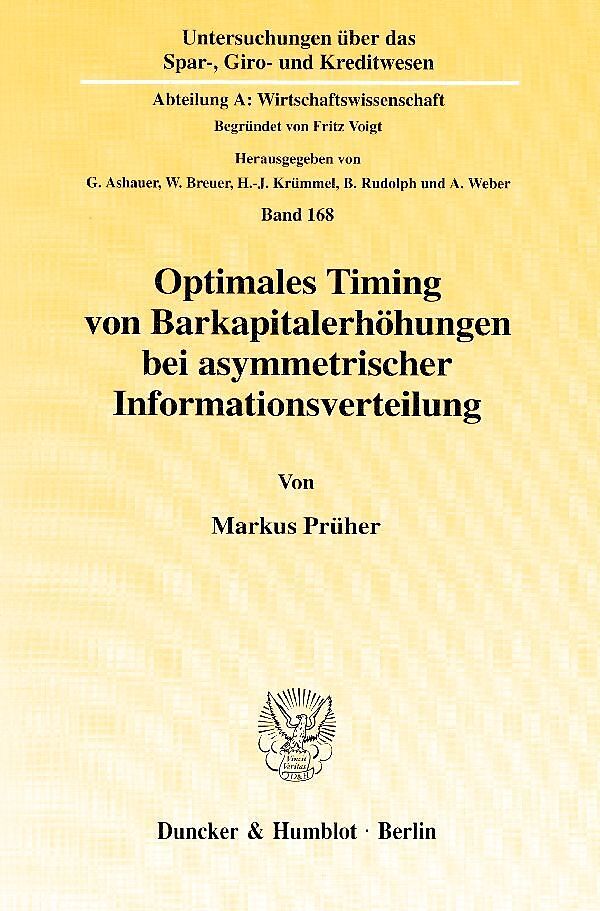 Die Frage, auf welche Weise Wachstumsunternehmen ihren Eigenkapitalbedarf im Zeitablauf optimal decken sollten, wurde in der finanzierungstheoretischen Literatur trotz ihrer hohen praktischen Relevanz bislang weitgehend vernachlässigt. Der Autor befaßt sich mi...