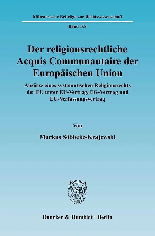 Markus Söbbeke-Krajewski untersucht den Bestand an religionsrechtlichen Regeln, die die EU produziert und weist Ähnlichkeiten hinsichtlich ihrer Entstehungsgründe und ihres Konfliktlösungsansatzes nach. Sie indizieren damit die Grundzüge eines systematischen R...