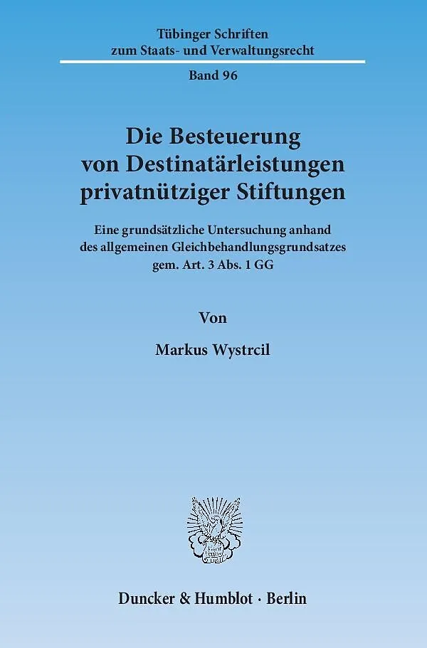 Einleitung § 1: Begriffsbestimmungen und Rechtsgrundlagen Klärung von Begriffen Stiftungsrechtliche Grundlagen Die konstitutiven Stiftungsmerkmale im Einzelnen § 2: Die Behandlung satzungsgemäßer Leistungen einer Stiftung nach Maßgabe des Einkommensteuergesetzes Sonstige Einkünfte gem. §§ 2 Abs. 1 Satz 1 Nr. 7, 22 Nr. 1 Satz 1 f. EStG Einkünfte aus Kapitalvermögen gem. §§ 2 Abs. 1 Nr. 5, 20 Abs. 1 Nr. 9 Satz 1 EStG § 3: Verfassungsrechtliche Untersuchung von Destinatärleistungen auf ihre Einkommensteuerbarkeit anhand des allgemeinen Gleichbehandlungsgrundsatzes nach Art. 3 Abs. 1 GG Der allgemeine Gleichbehandlungsgrundsatz als verfassungsrechtlicher Prüfungsmaßstab Analyse der einkommensteuerlichen Behandlung von Destinatärleistungen auf ihre Folgerichtigkeit § 4: Folgen für die erbschaft- und schenkungsteuerrechtliche Behandlung satzungsgemäßer Auskehrungen einer Stiftung Die Behandlung satzungsgemäßer Auskehrungen einer Stiftung nach Maßgabe des Erbschaft- und Schenkungsteuergesetzes Verfassungsmäßigkeit einer Mehrfachbesteuerung von Auskehrungen bei Stiftungsauflösung mit Einkommen- und Erbschaft-/Schenkungsteuer Zusammenfassung der Ergebnisse Literatur- und Sachverzeichnis