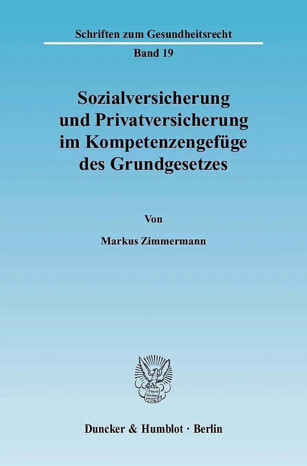 Der immensen Bedeutung der Sozialversicherung trägt das Grundgesetz durch ein spezifisches Kompetenzengefüge hinsichtlich Gesetzgebung, Verwaltung und Organisation sowie Lastenverteilung Rechnung. Dezidiert untersucht Markus Zimmermann diesen durch Art. 74 Abs...