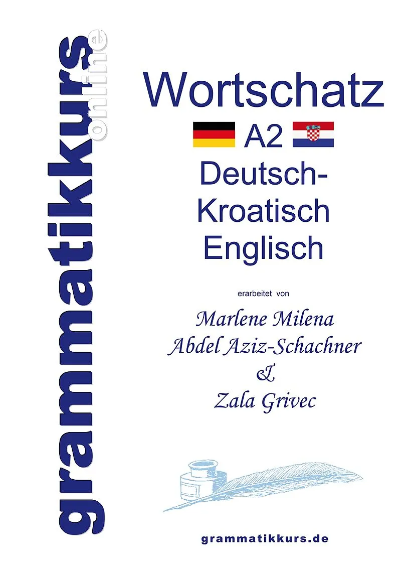 Buchbeschreibung A2 Deutsch - Kroatisch Englisch + Grammatik Der A2 - Wortschatz enthält zusätzlich zur Übersetzung ins Kroatisch - Englisch folgenden Grammatiken. Substantive/Nomen Artikeln (der-die-das) Pluralformen, -endungen und Regeln zur Pluralbildung Fä...