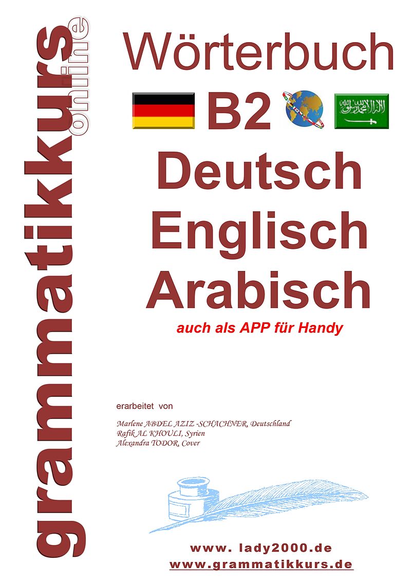 B2 DEUTSCH ENGLISCH - Arabisch + Grammatik Der B2 Wortschatz enthält zusätzlich zur Übersetzung ins ENGLISCH - Arabisch folgenden Grammatiken: Substantive/Nomen Artikeln (der, die, das) Pluralformen, Endungen und Regeln zur Pluralbildung Fällen (Nominativ, Gen...
