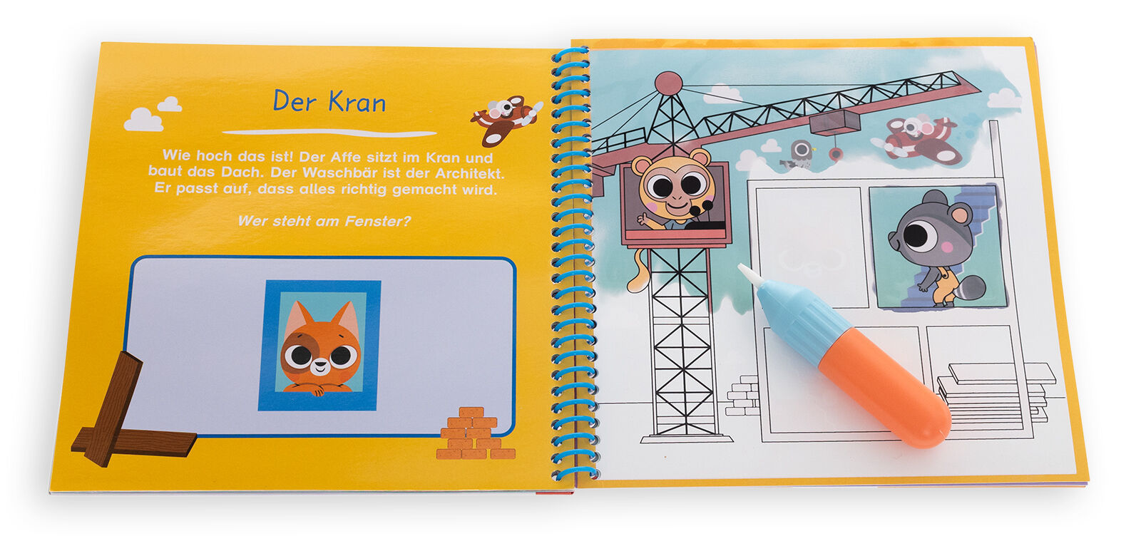Mit Wasser malen, ganz ohne Flecken! Vorsicht, Baustelle ! Hier geht's zum Wassermalspaß: In diesem Malbuch mit Wassertankpinsel laden lustige Baustellen-Szenen Kinder ab 3 Jahren dazu ein, die Bilder zum Leuchten zu bringen. Einfach den Zauberpinsel mit Wass...