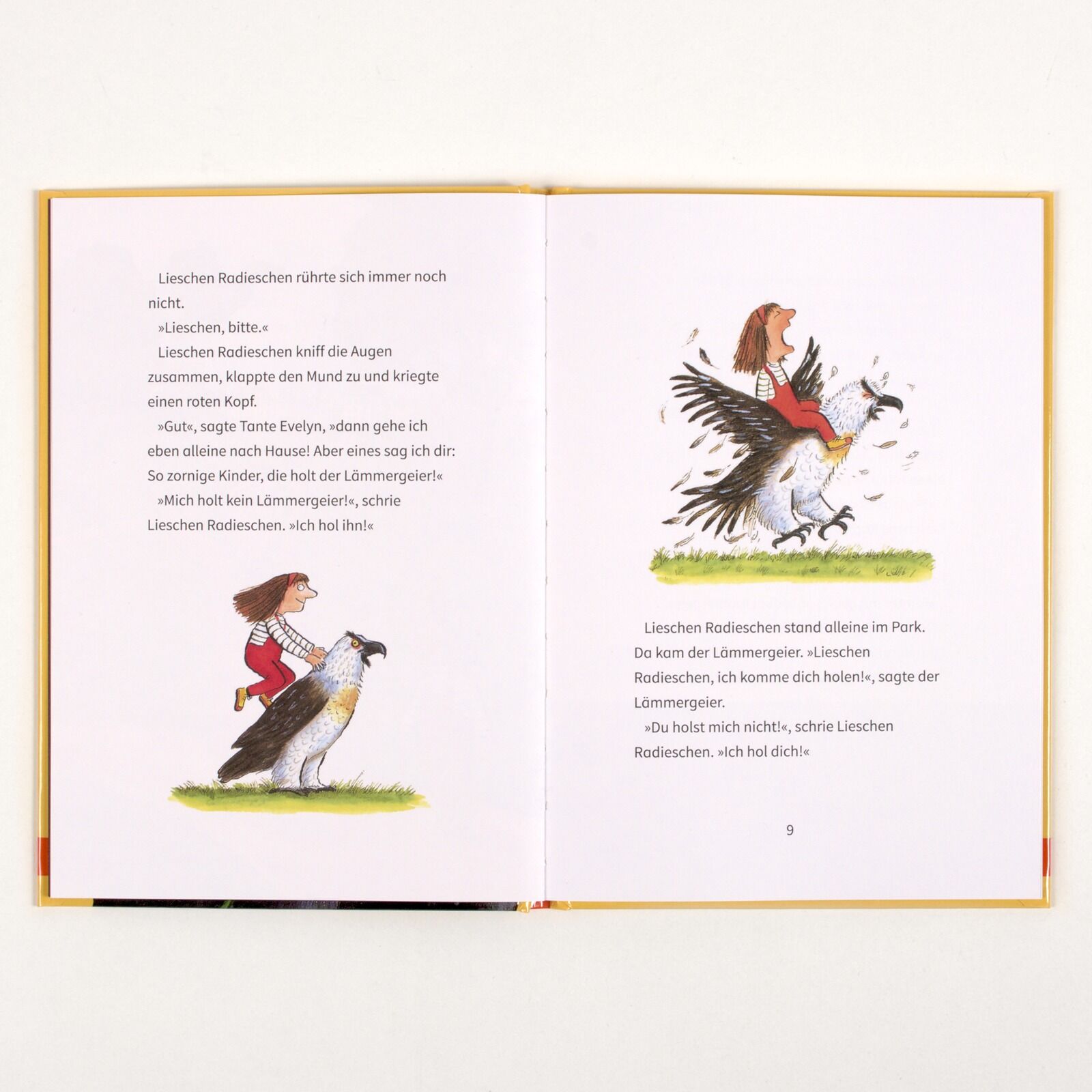 Wenn Lieschen Radieschen sich einmal etwas in den Kopf gesetzt hat, gibt sie solange nicht auf, bis sie es bekommt. Das kriegt auch der berühmte Lämmergeier zu spüren. Zusammen erleben sie ein aufregendes Abenteuer in einem fremden Königreich. Ein zeitloses un...