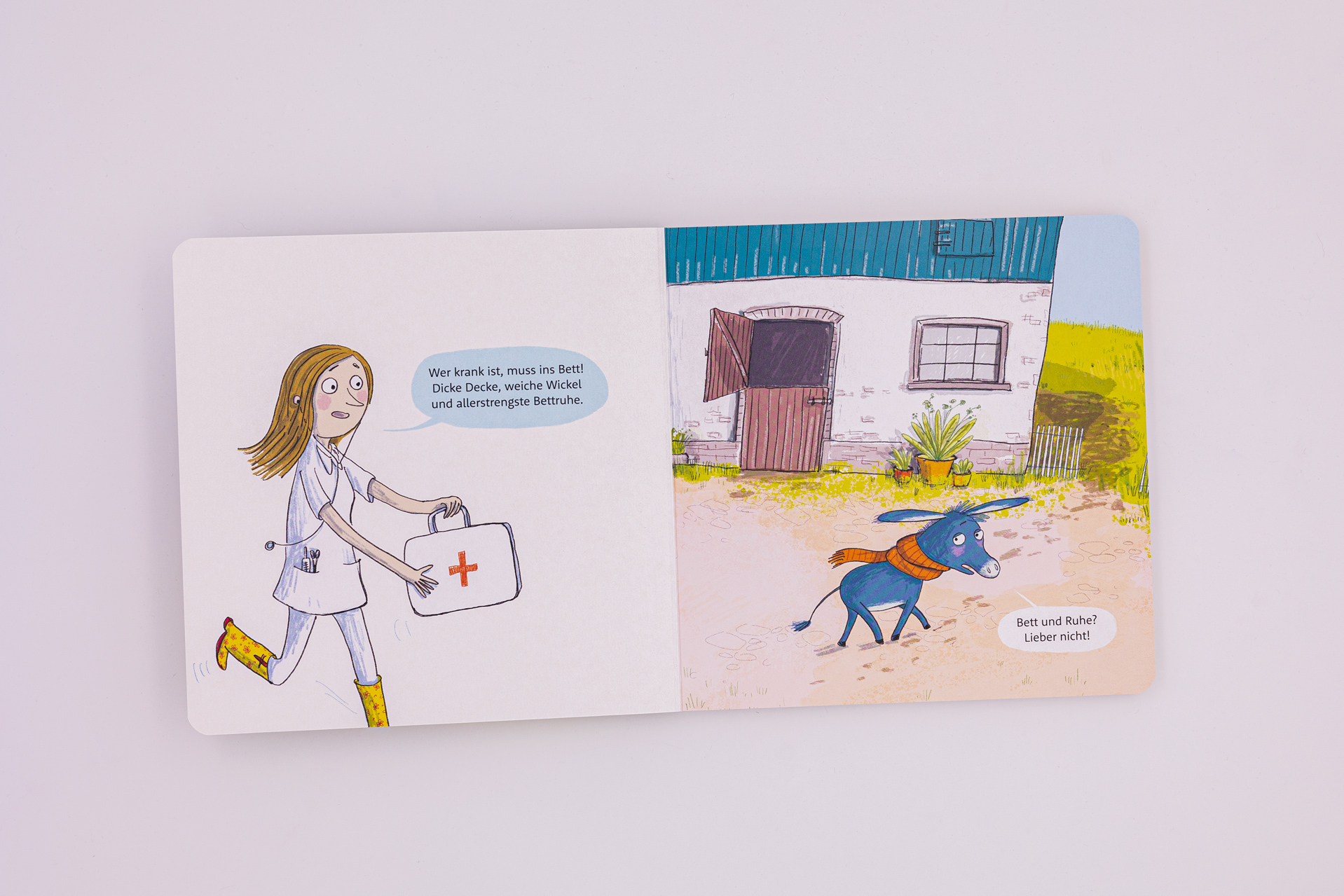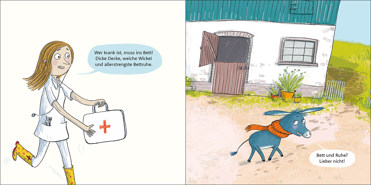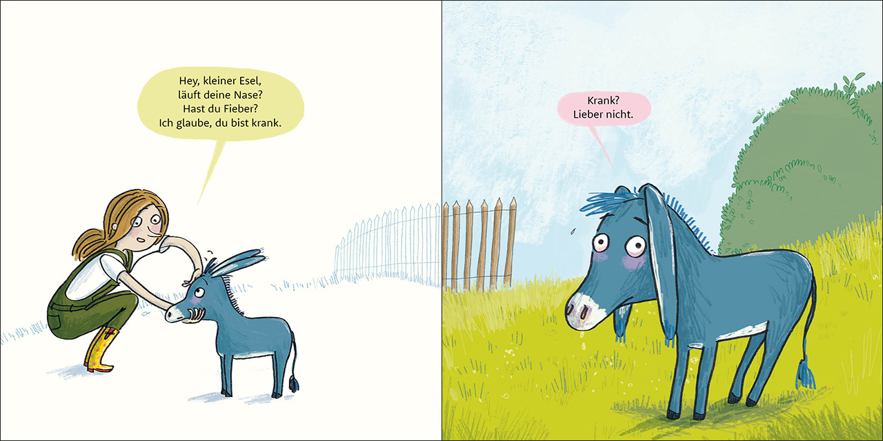 Eine laufende Nase, Kopfschmerzen und ins Bett? Das möchte der kleine Esel lieber nicht! Aber Bücher lesen, sich etwas zum Essen wünschen, Besuch haben das ist eigentlich gar nicht so schlimm. Wichtiges Familienthema: Krank sein Drittes Pappbilderbuch in der R...