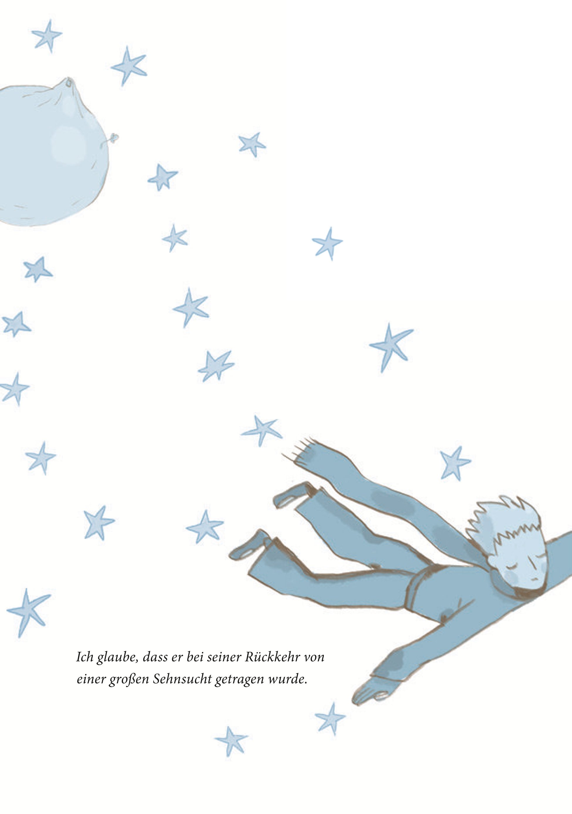 Der kleine Prinz. Wie es ihm wohl geht? Der Maulkorb hatte keinen Riemen, Sie erinnern sich? Hat das Schaf die Rose doch gefressen und ist der Planet danach von den Affenbrotbäumen gesprengt worden? Was würde der Prinz tun, ohne Rose und Planeten? Was hat Anto...