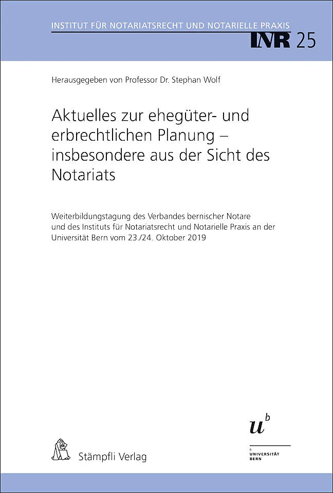Das Werk ist dem Thema «Aktuelles zur ehegüter- und erbrechtlichen Planung insbesondere aus der Sicht des Notariats» gewidmet. Fragen der ehegüter- und erbrechtlichen Planung sind für die praktizierenden Notarinnen und Notare sowie auch für alle mit der entsp...