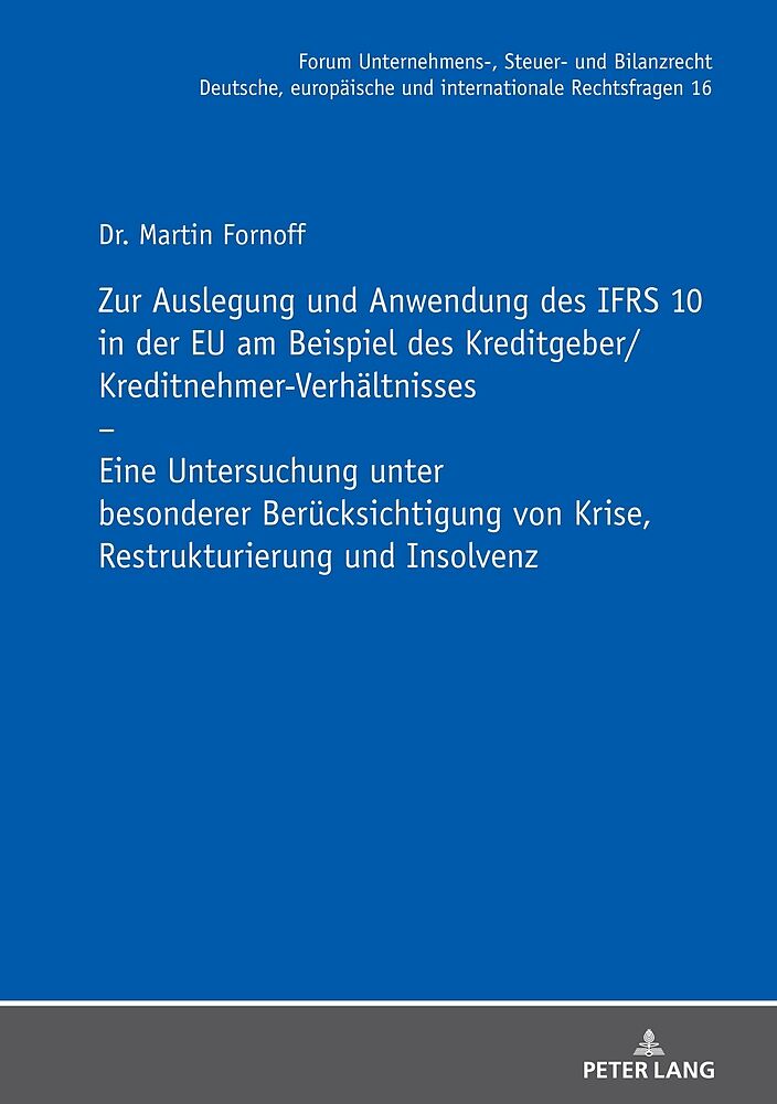 Der Autor befasst sich mit der Auslegung von IFRS in der EU und untersucht das Beherrschungskonzept des IFRS 10 am Beispiel des Kreditgeber/Kreditnehmer-Verhältnisses. Er geht dabei vertieft auf die bilanzrechtlichen Implikationen von Krisen-, Restrukturierun...