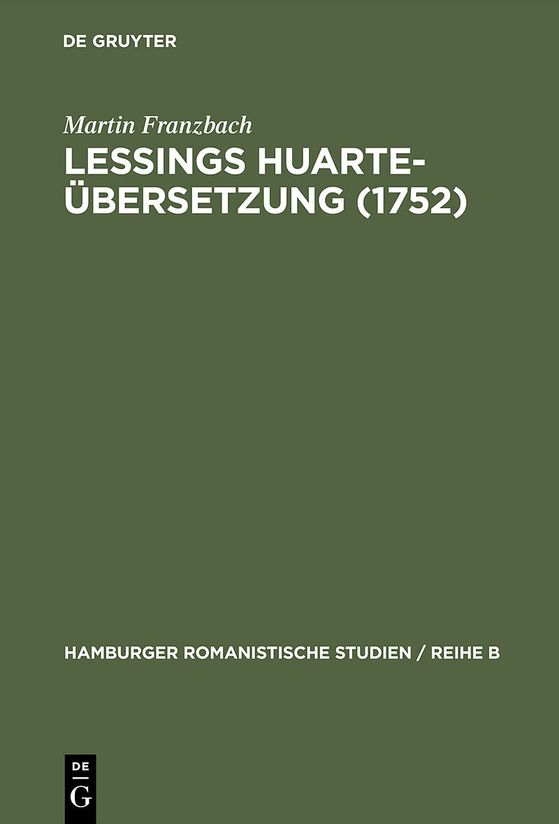 Keine ausführliche Beschreibung für "Lessings Huarte-Übersetzung (1752)" verfügbar. Klappentext Frontmatter -- INHALT -- VORWORT / Franzbach, Martin -- EINFÜHRUNG -- I. Kritischer Forschungsbericht über den Hispanismus Lessings -- II. Juan Huarte de ...